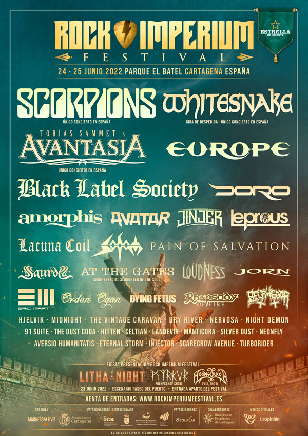 ROCK IMPERIUM FESTIVAL – Días 24 y 25 de junio de 2022 en Cartagena – Parque de la Cuesta del Batel + Fiesta de Bienvenida el 23 de junio