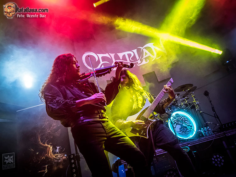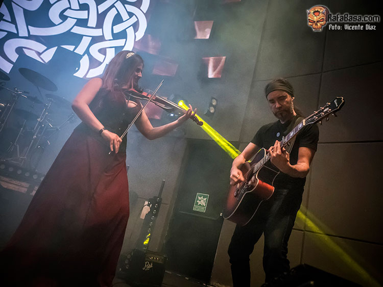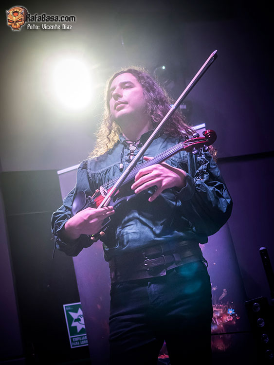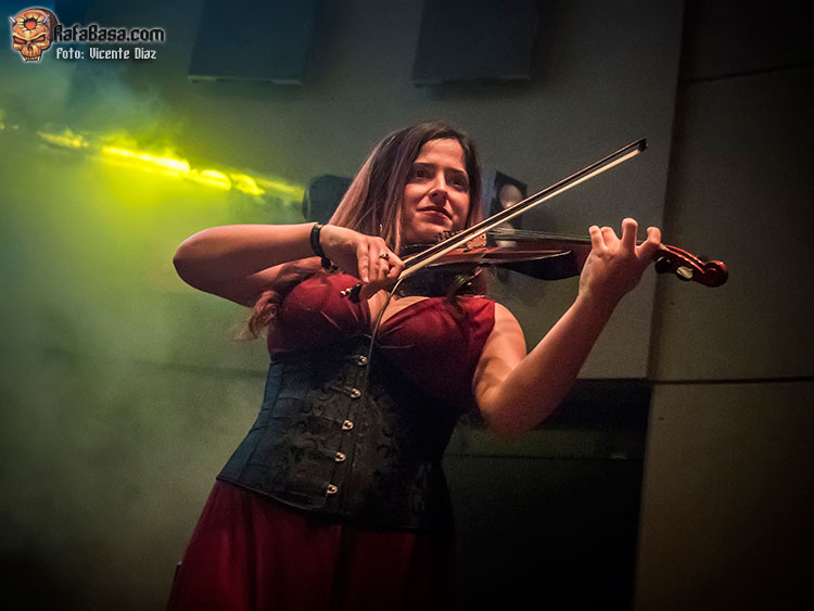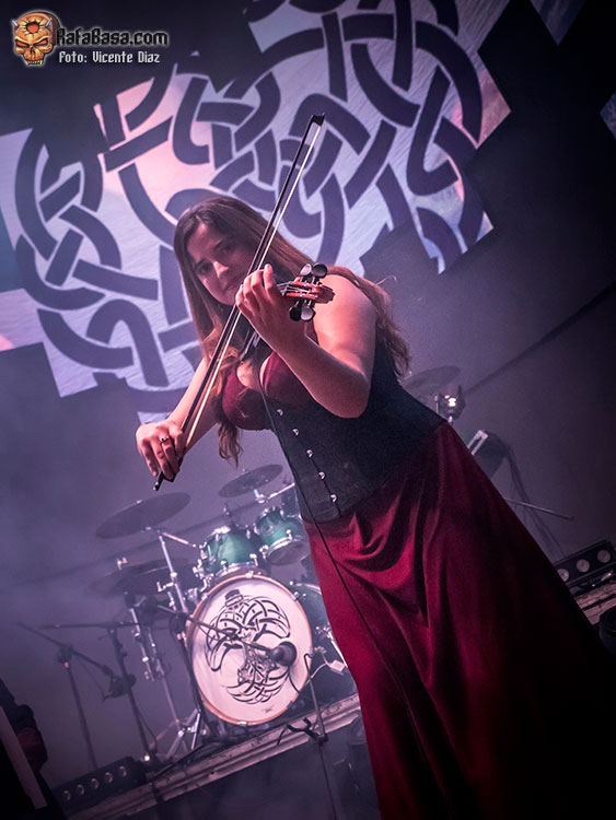 Pero la mayoría fueron a ver a CELTIAN, tras charlar y bromear con su técnico Borja, cambiar impresiones con Javi de Kivents, Delfín, Tana y Vasco, y José de LÁNDEVIR, a su vez manager de CELTIAN, y hablar largo y tendido con el gran teclista Javi Díez, la banda apareció en escena y arrancó su show, tras la introducción, con un poderoso «Nueva Era» de su reciente «Sendas de Leyenda», con una batería muy contundente de David, quien cada vez me gusta más, y una banda que gana muchos enteros con sus “nuevos” bajista Raúl Plaza y guitarrista, Sergio Culebras, junto a Diego Palacio, como “patrón” de la noche, el violinista Txus Borao quien se hizo dueño de la escena con su personalidad y gran nivel, y la musa Xana, cantando muy afinada, sobrada y segura, con su encantadora sonrisa eterna y un rodaje que se le notó mucho escénicamente la pasada noche. No hay nada como girar y girar, y eso se notó el pasado sábado, como ya he dicho.
