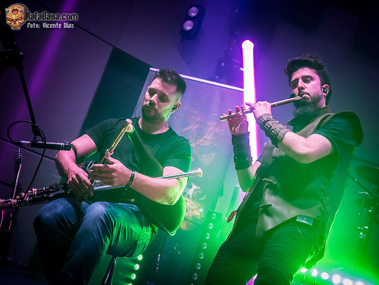 “Hiedra”, que fue la siguiente, nos hechizó con su bella melodía, y dio paso al gran “Sendas de Leyenda” donde Txus cambió el violín por un instrumento medieval de cuerdas llamado buzuki, acompañado de una certera melodía y unas guitarras muy potentes, mientras David le daba al bombo con poderío.