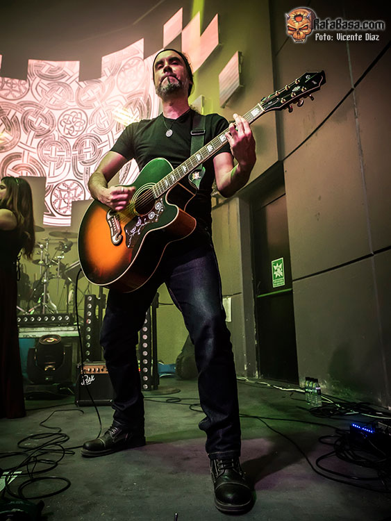 Llegó otra gran tema: “La Hija de las estrellas”, versión de SAUROM que han bordado en su álbum y bordaron en directo. Dio paso para que otro invitado formara parte del concierto. Angel, el vocalista de los originales DRY RIVER, cantó a dúo con Xana muy acertadamente “Al otro lado del camino” , que en el disco cantó Isra Ramos. Lo cierto es que Ángel lo hizo muy bien.