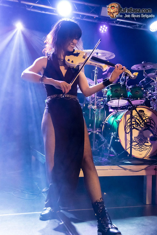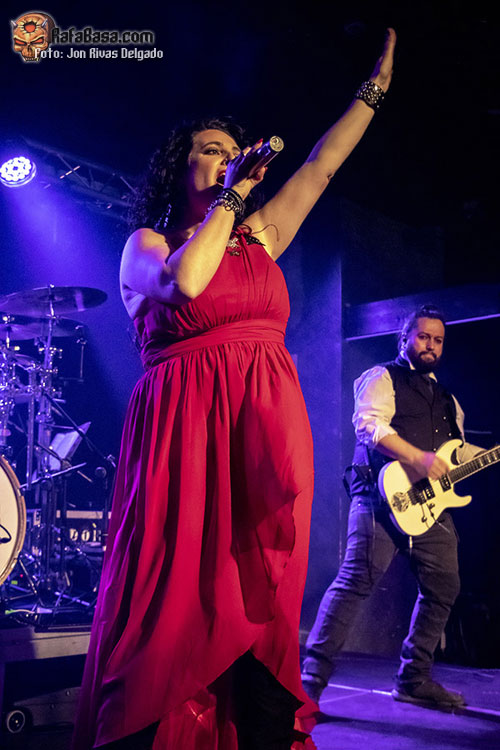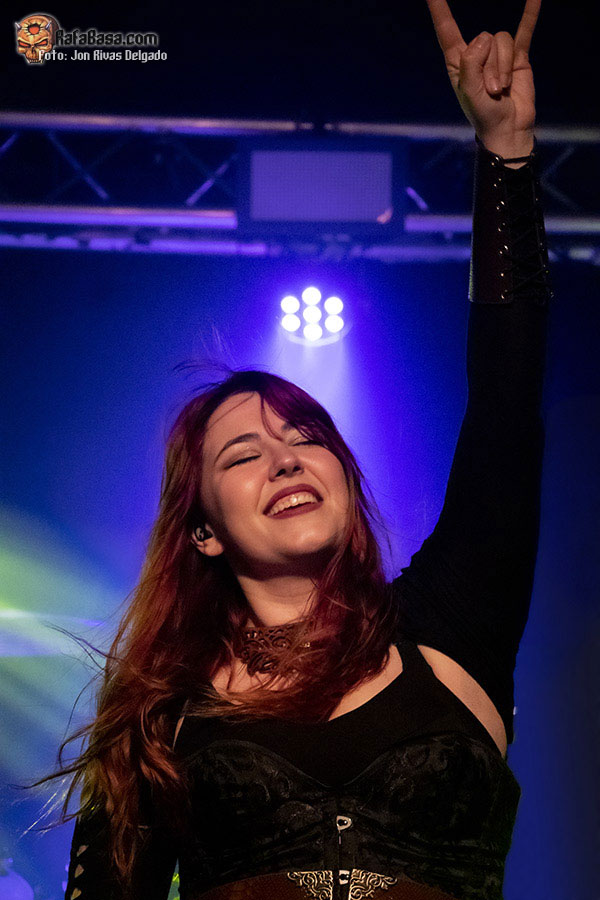 Otro de los puntos fuertes de la noche fue poder ver a la espectacular vocalista, Xana Lavey, en riguroso directo. Para mí fue la primera ocasión en la que pude disfrutar de la voz de la granadina, que alcanzó la fama gracias a su propio canal de youtube y a algunas colaboraciones puntuales con Mägo de Oz. Su voz, claramente melódica y que llega a registros altísimos sin despeinarse, quizás no terminará de cuajar en la noche del viernes, probablemente porque no empastó correctamente con el resto de la banda. Desconozco si se debe a algún tipo de problema de sonido, pero la verdad es que en comparación con el concierto de LAST DAYS OF EDEN, no hubo color.