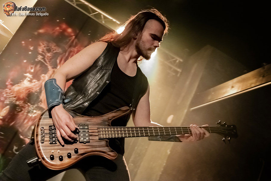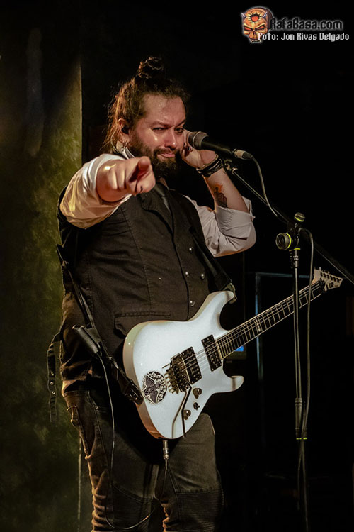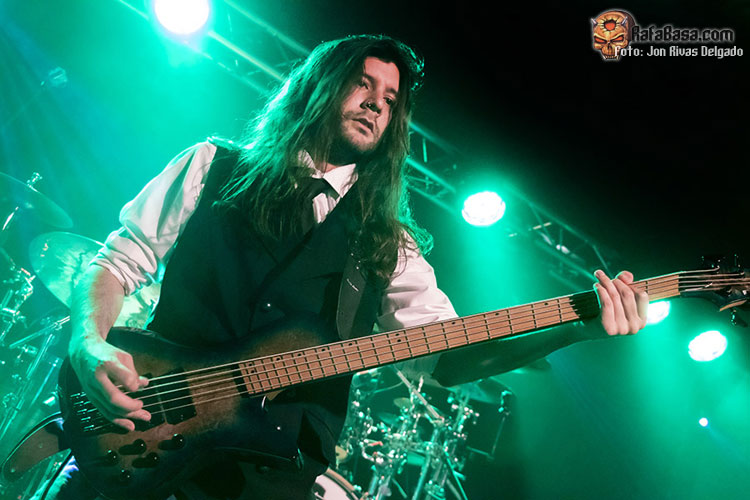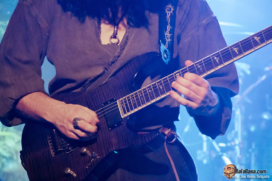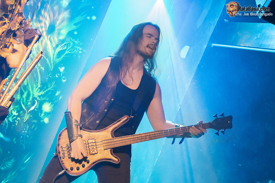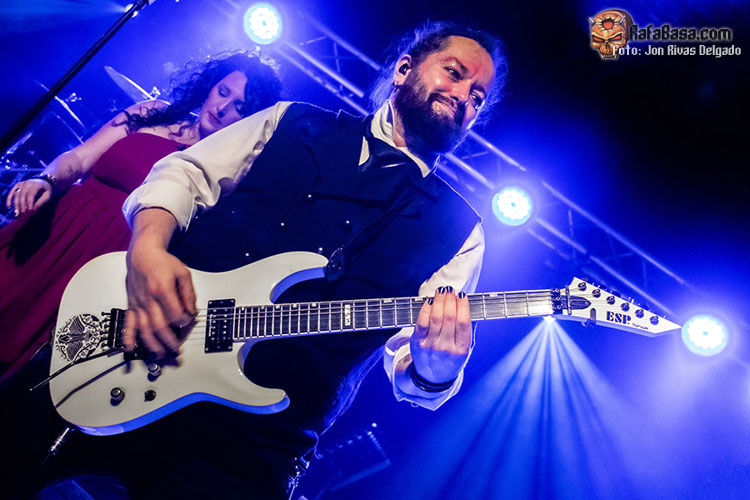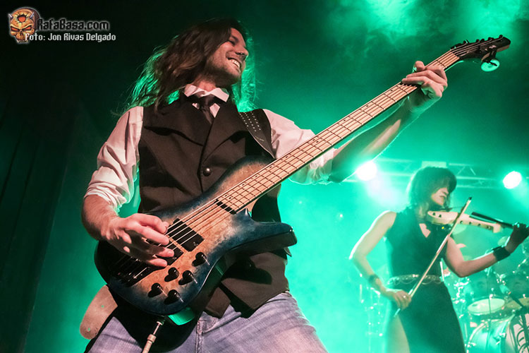 Comenzaba sonando la intro de LAST DAYS OF EDEN con una entrada flojilla, mucho menor a lo que habitualmente nos tiene acostumbrados la catedral del rock Alavés. En seguida vimos que había alguna ausencia importante en las filas de los asturianos: Andrea no iba a poder deleitarnos con sus Gaitas y demás “vientos” esa noche. Se notó la ausencia, puesto que hubo que tirar de samples para algunas partes, pero no le dimos mayor importancia, sabiendo que este concierto era prácticamente un regalo inesperado para todos los asistentes, y prácticamente improvisado.