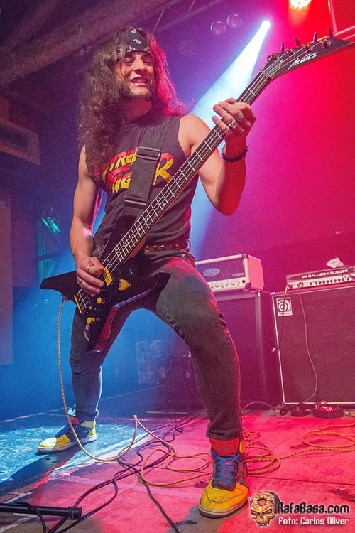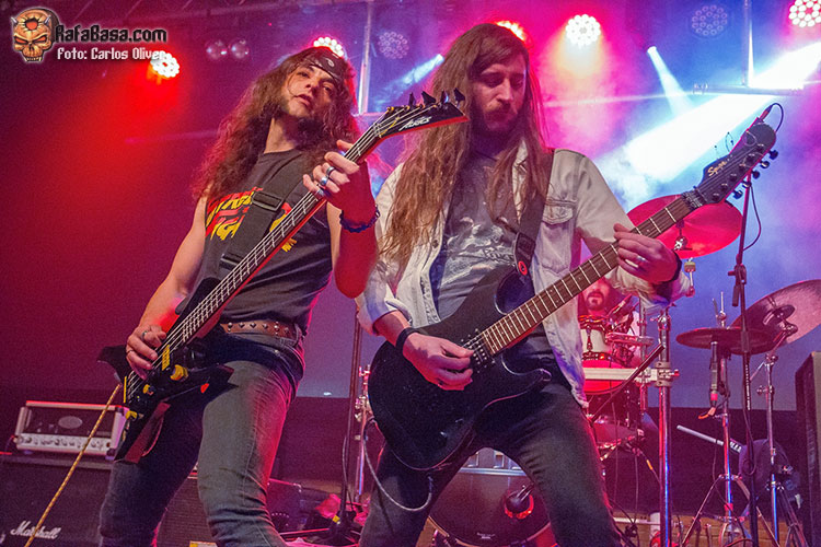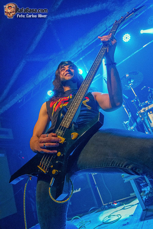 Ya mencioné que los murcianos son una banda de proyección internacional, y la inclusión de Alex Panza les ha dado además un plus extra, ya que el vocalista italiano ejerció en todo momento como el perfecto maestro de ceremonias dirigiéndose al respetable en inglés. Pese a la evolución que ha sufrido la propuesta de la banda creo que fue en temas como “Ride Out The Storm”, donde dejaron patente que no han perdido ni un ápice de garra, ni tampoco su desmedida pasión por la velocidad; aunque ahora todo tiene un tamiz más melódico y elegante, especialmente a la hora de tratar las voces y los coros, tal y como dejaron patente a lo largo del coreable “Hard Intentions (Secret Dancer)”. Pero si algo llamó la atención del respetable a lo largo del show fueron las guitarras dobladas y los duelos que protagonizaron Daniel Meseguer y su “compañero” de esta noche, Kyle McNeill.