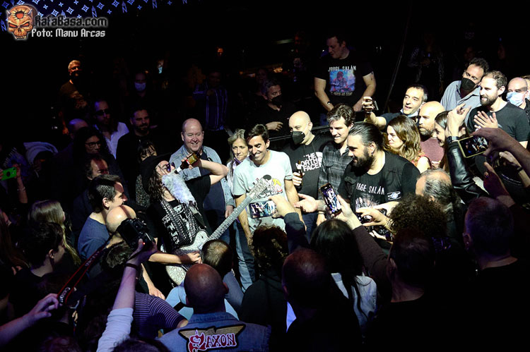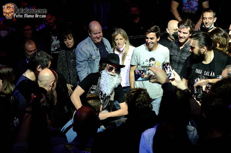 Tras un brevísimo paso por el backstage para acicalarse convenientemente con barbas y sombreros, vuelta frente al público con otro clásico en las revisiones de Mr. Salán, el inmortal “La Grange” de ZZ TOP en la que como suele ser habitual Jorge bajó entre el público para desgranar su parte instrumental y darle un trago a alguna que otra cerveza.