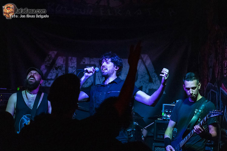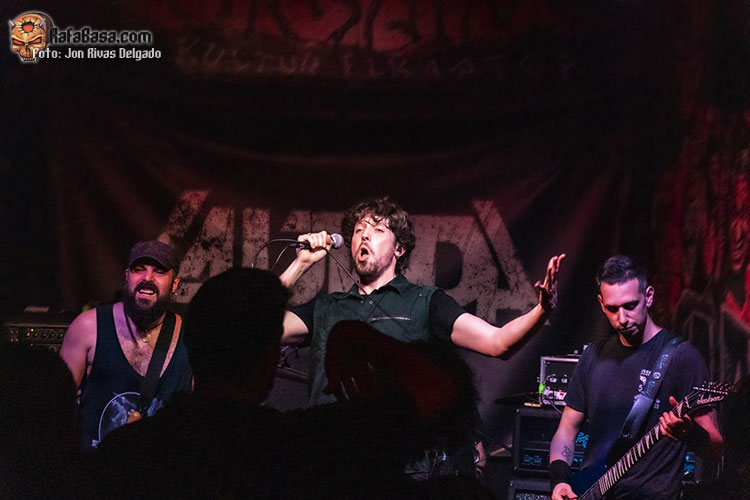 El show al que asistí aquella tarde fue, sin duda, directo y sin florituras. Una docena de temas de diversos estilos, todos dentro del rock y del metal, interpretados en algo más de una hora de duración, con medio centenar de asistentes en perfecta comunión. Hacía mucho tiempo que un servidor no asistía a un bolo de estas características, que me transportó automáticamente un par de décadas atrás, y me trajo muy buenos recuerdos. Un escenario minúsculo y prácticamente a ras de suelo sirvió de cobijo para el cuarteto, que desplegó rabia, potencia y decibelios por los cuatro costados.