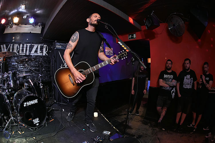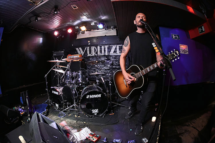 Acompañado por una guitarra acústica, saltaba a escena Juan para dar comienzo a la noche y lo hacía con los primeros acordes de “Cross Wrapped in thorns” de su más reciente álbum “Ephemeral”, disco dedicado íntegramente a su padre y a sus últimos días de vida, la sucedería “The end of Grace” seguida de “Blight” con las que sorprendió a muchos de los presentes que no conocían la propuesta en solitario de este músico. “Your Kingdom’s gone” sería la única pieza escogida para representar su anterior lanzamiento “Death Throes” y con ella llegaríamos al ocaso de una corta pero emotiva representación de unos temas cargados de atmósfera y magia. “I’ll dig and I’ll dig” y “Caballos en la Nada” serían la calma justo antes de la tormenta, en este caso una tormenta que llevaba anunciada desde hace mucho y que venía desde tierras Belgas, llegaba el momento de WIEGEDOOD .