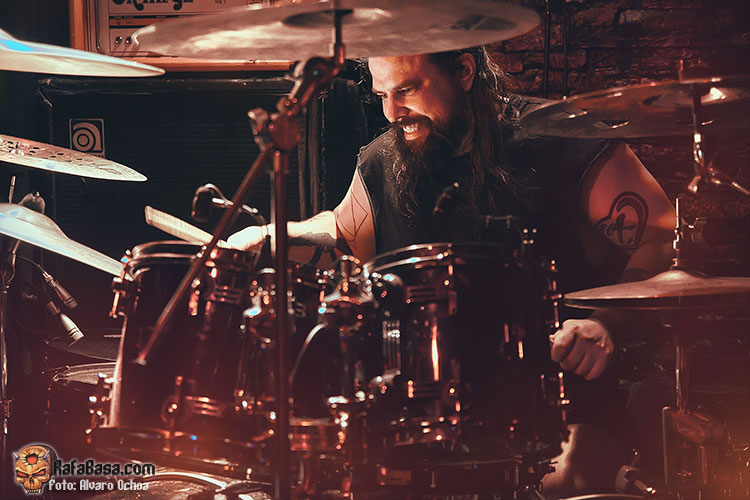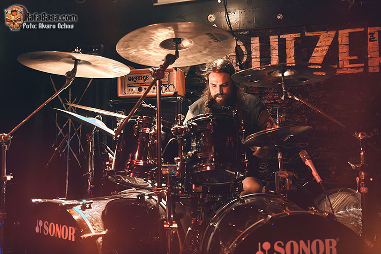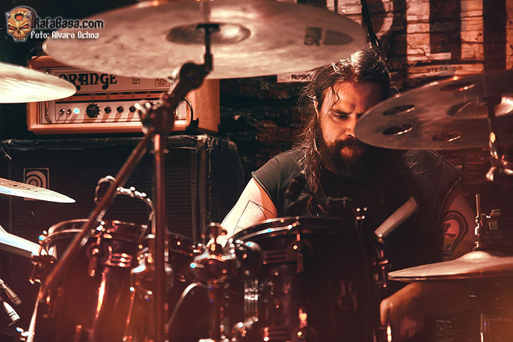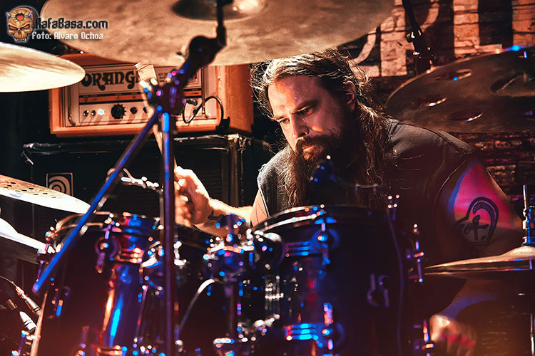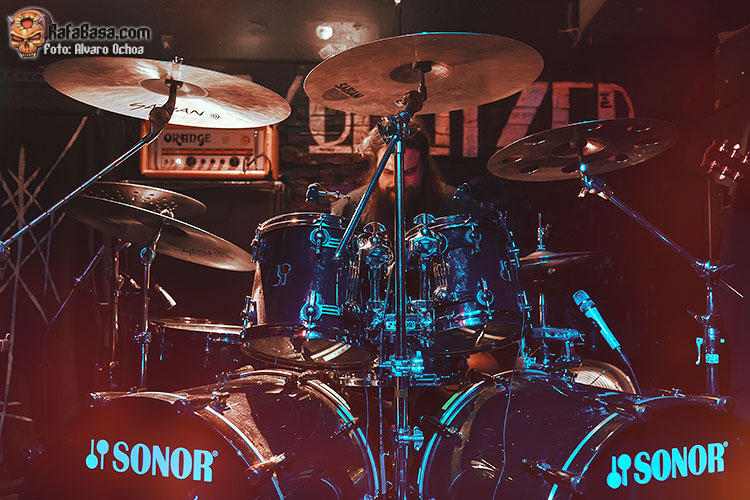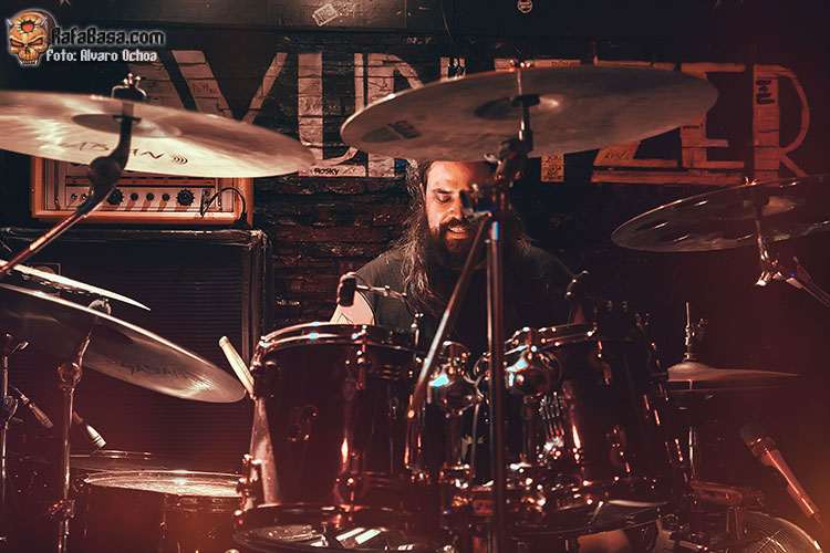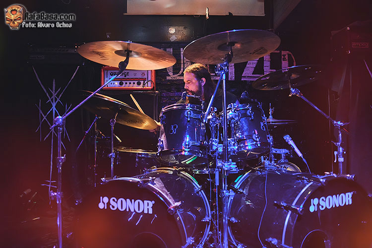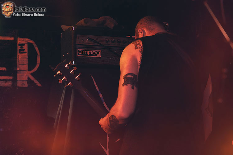 Con “Ontzieling” retrocedían a su segundo álbum “De Doden Hebben Het Goed II”, una descarga rápida y violenta directo a la yugular que fue una delicia para aquellos que llevamos tiempo siguiendo a la banda y prácticamente sin darnos cuenta, sonaban las primeras notas de “De doden hebben het goed II”, el castigo de los belgas no paraba y sin apenas descanso se iban sucediendo uno a uno los temas. “Noblesse oblige richesse oblige” sería el siguiente regresando a su último lanzamiento, un tema bastante alabado por los presentes cuya emoción fue notoria al sonar las primeras notas. Llegado a este punto, quiero destacar el trabajo en la batería del señor Wim Coppers, ¡qué barbaridad lo de este hombre!, que pegada más potente y que resistencia, sencillamente un animal de la percusión, a partir de hoy voy a seguir con especial atención los trabajos de Wim, porque, si bien es cierto que todos los músicos de WIEGEDOOD hicieron un trabajo impecable, lo de este señor fue de sobresaliente, era imposible no fijar la mirada en él, sin duda, el protagonista de la noche.