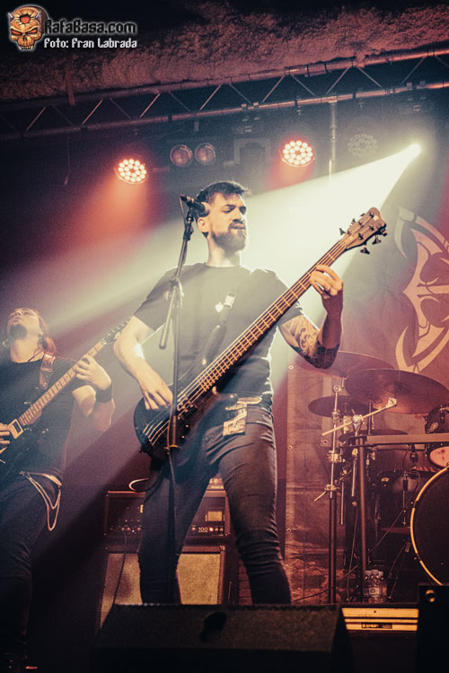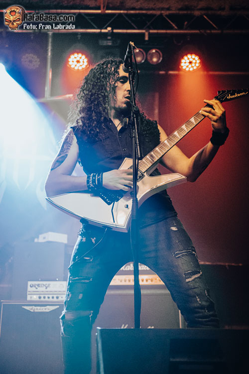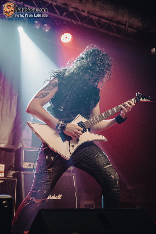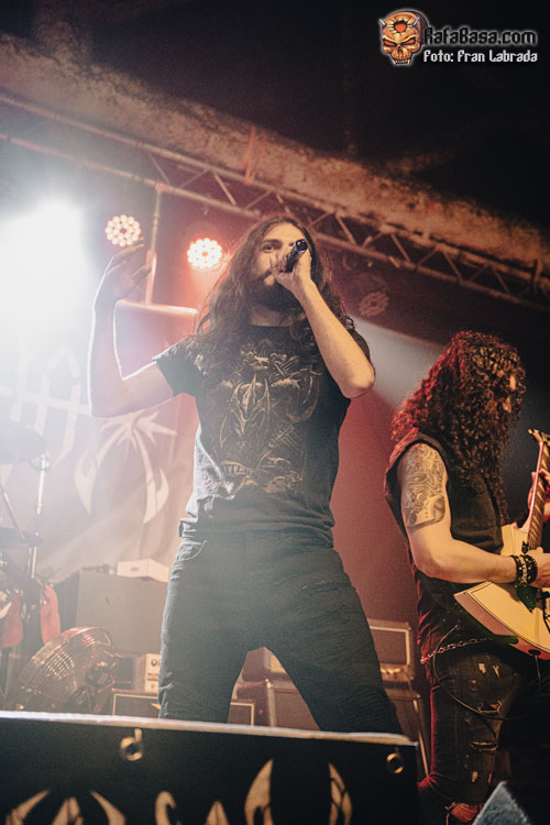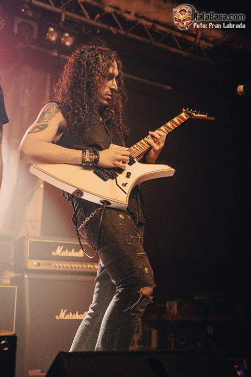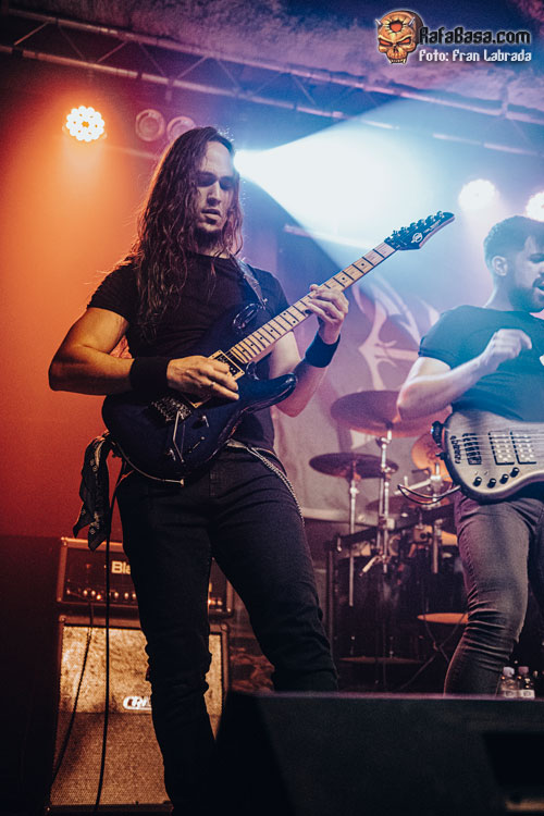 No tardaría en llegar el primer cover de la noche una celebrada versión del clásico de Helloween “I Want Out”, que servía para que su vocalista hiciera gala de sus tonalidades agudas para acabar arrancando del público, que poco a poco iba dando colorido al recinto, una cálida ovación. Precisamente, si algo no me acabó de convencer fue el concurso de su frontman, y no por su faceta vocal, sino porque me dio la sensación de que Kuido en algunos momentos delegó en exceso en sus compañeros, especialmente sobre Marc y Xavi a la hora de realizar las presentaciones. Sin embargo, sí que me gustó su forma de interpretar y llevar al directo temas como “Dragon Lover”, y “Chandrain”, ataviado con una túnica larga mientras la banda hacía gala de su vertiente más potente y aguerrida, aunque sin perder en ningún momento su enfoque melódico.