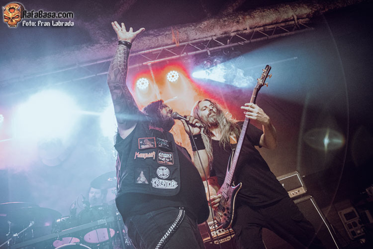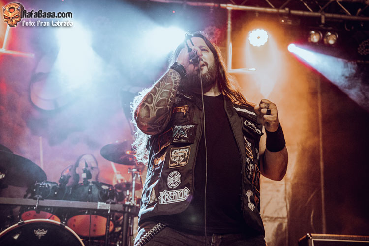 Si la memoria no me falla, para un servidor esta era la primera vez que tendría ocasión de ver a OMEN en directo, y aunque su actual encarnación dista mucho de la que grabó sus primeros trabajos, lo cierto es que el toque de frescura que les otorga la presencia del vocalista y frontman griego Nikos Migus A. le ha sentado muy bien a la banda, permitiéndoles llegar a una nueva generación de metaleros. En cualquier caso, sería imposible que fuera de otro modo ya que el que fuera su vocalista J. D. Kimball, con quien grabaron sus primeros tres largos, falleció en 2003. Curiosamente la veterana formación no traía bajo el brazo un nuevo trabajo que presentar, su última referencia de estudio “Hammer Damage” data de mediados de 2016. Así que para regocijo de sus incondicionales el repertorio de esta noche estuvo muy centrado en lo que podríamos denominar como su etapa clásica.