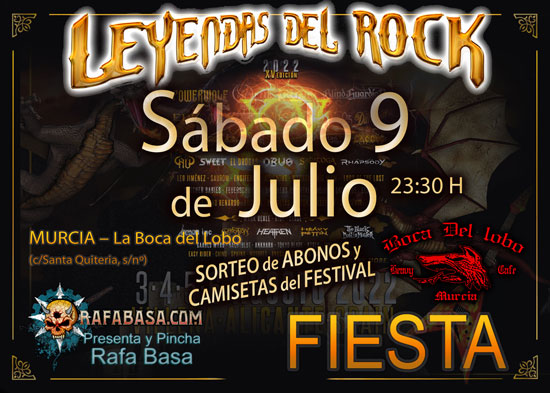 FIESTA LEYENDAS DEL ROCK en MURCIA en La Boca del Lobo, el sábado 9 de julio.