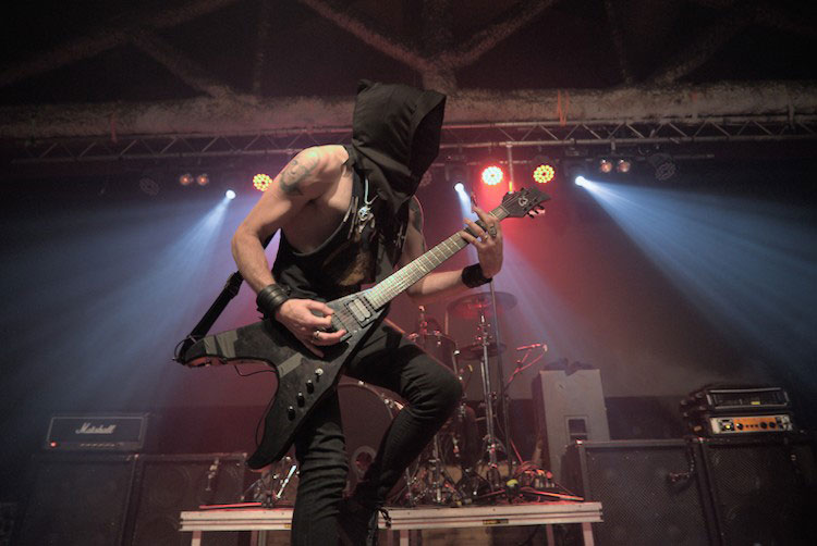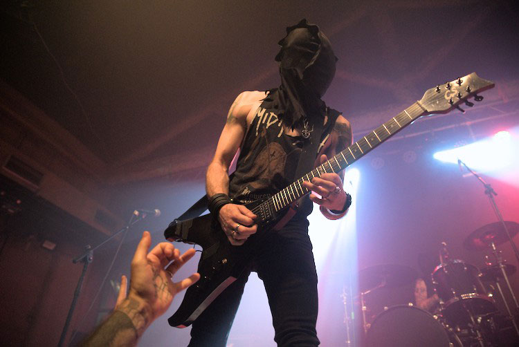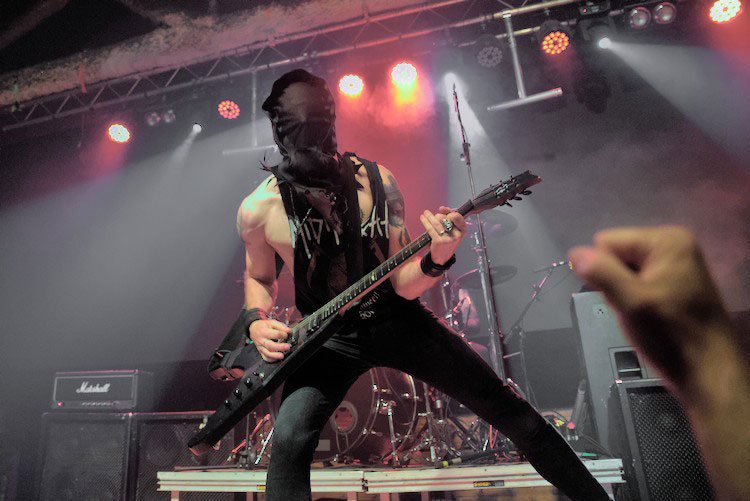 Entre carreras, intercambio de posiciones entre sus miembros, y con la gente disfrutando al máximo y totalmente metida en el show de los americanos llegaba el momento de ponernos aún más subversivos y para ello que mejor que seguir zarandeándonos inmisericordemente con el humeante “Evil Like A Knife”, que les servía para proponernos una primera incursión en su “No Mercy For Mayhem”. Con la guitarra de Commandor Vanik taladrándonos el cerebro arrancaba la coreable “Fucking, Speed And Darkness”, con la que el nivel de depravación e intensidad continuaba en aumento. Con la sala convertida en una infernal sauna llegaba el momento de seguir indagando en su obra de 2020 para dar cancha al tema que le prestaba título “Rebirth By Blasphemy”, que con su tempo más crujiente se convirtió en la excusa perfecta para que todos alzáramos los puños al aire cuando tocaba corear su hímnico estribillo.