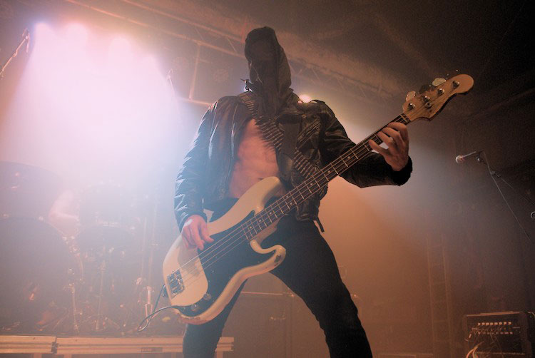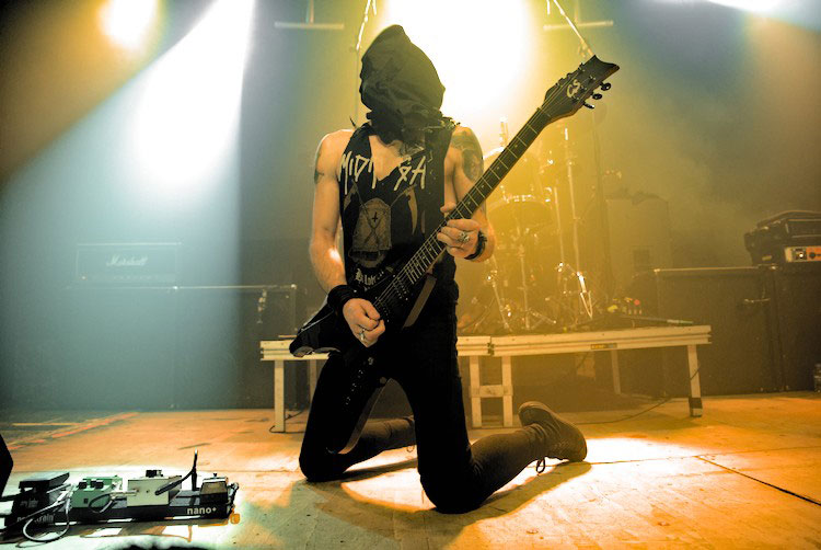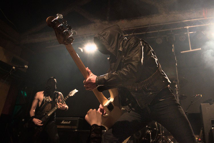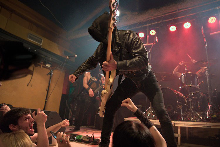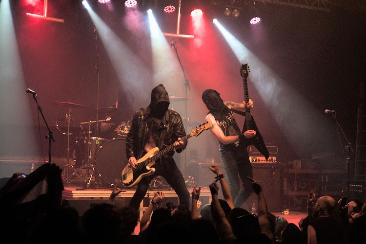Tras un rápido cambio de equipo tocaba cambiar drásticamente de estilo, ya que si NIGHT DEMON no vacilaron a lo hora de postularse como unos alumnos aventajados de todas esas bandas de estirpe clásica dentro del heavy metal, Athenar y sus MIDNIGHT no tardarían en desplegar su oscuro manto de infernal locura para dejar toda la sala impregnada de un penetrante aroma a azufre. No me voy a andar por las ramas: la descarga de MIDNIGHT me sorprendió. Me gustó mucho la rabia, la actitud, la ejecución, y el espíritu transgresor y nihilista de un trío que apareció encapuchado y que no dejó de arremeter una y otra vez contra un público que se dejó arrastrar por su locura hasta convertir la sala en un auténtico desmadre, con subida del personal al escenario en el tramo final del show. Pero por otro lado me pareció todo un poco impostado. Vamos que toda esa locura, ese “estudiado desfase” estaba más que preparado, -que era un número de escenario de una trabajada puesta en escena-, y que los músicos hacían un papel, ya que de otra forma no puede entenderse que tocarán a ese nivel de exigencia física sin fallar ni una sola nota. Resumiendo que las cervezas, si se las tomaron, fue al acabar el show, ya que sobre las tablas vimos a tres auténticos profesionales de la música.