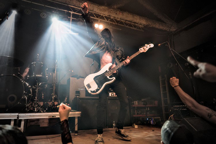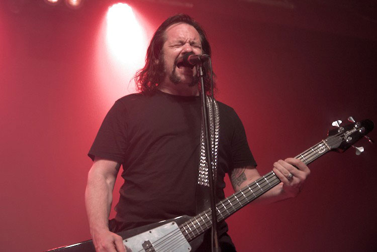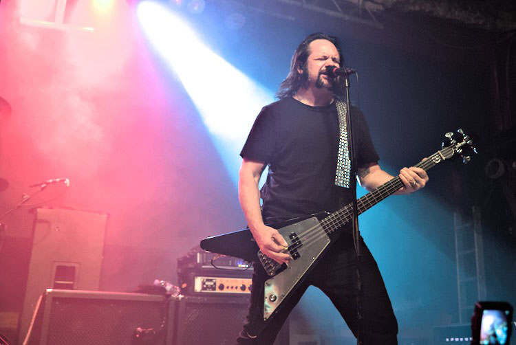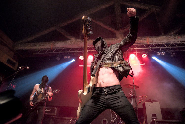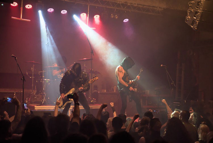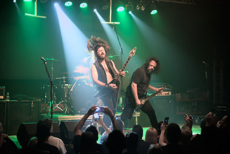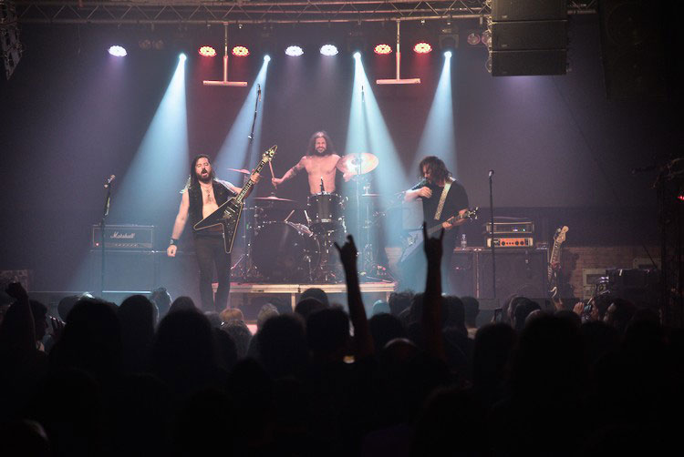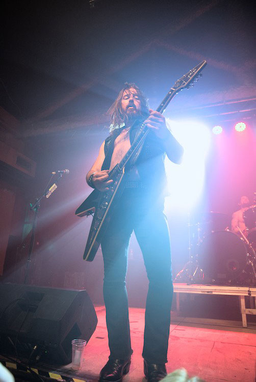 No tardarían mucho en volver a pisar el acelerador al máximo para revolucionar nuevamente al personal con otra de sus polvorientas cabalgadas marca de la casa como es “White Hot Fire”: sucia, letal y punkera, ideal para abandonarnos al pogo y el desfase mientras el trío no paraba de recorrer el escenario como si estuvieran poseídos. Uno de los momentos de la noche no tardaría en llegar con el rollo vacilón y altamente adictivo de “Lust Filth and Sleaze”. La elegida para frenar la dinámica de un show que estaba siendo trepidante fue “Satanic Royalty” que con esos “remansos de paz” entre sus seminales cabalgadas de estirpe clásica nos permitía recobrar minimamente el aliento.