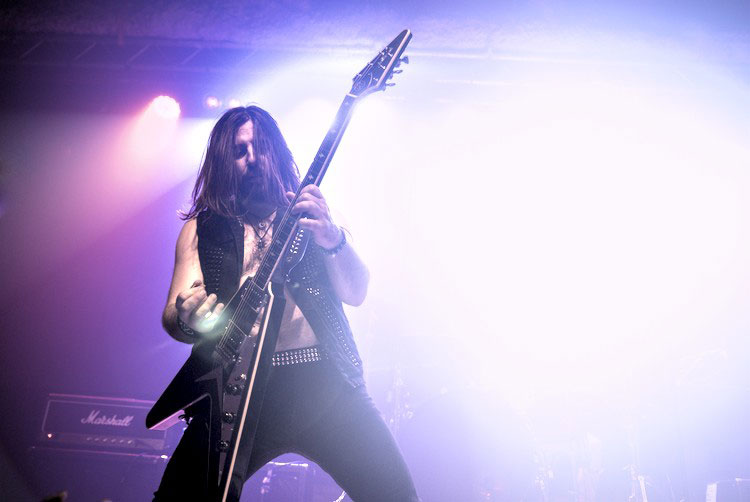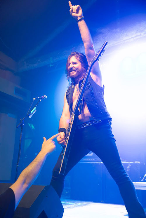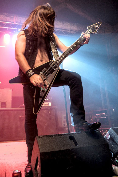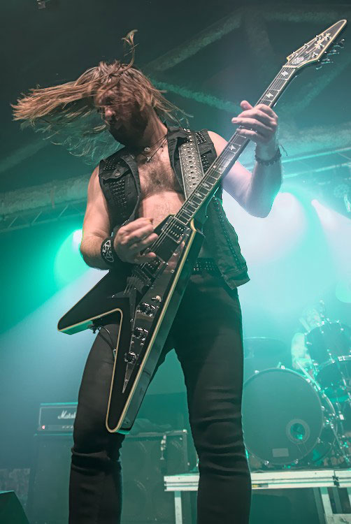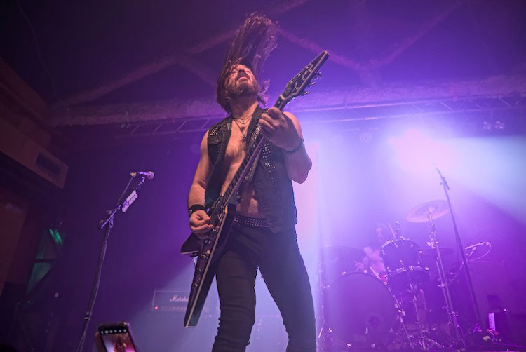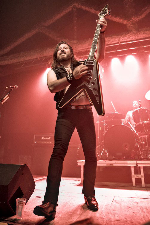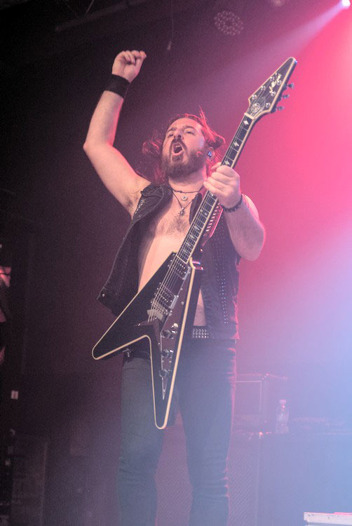 Acto seguido sería la guitarra de Armand John Anthony la que se encargó de flanquearnos el paso hacia tesituras más netamente speed metaleras con la primeriza “Ritual”, que desataba la euforia entre los presentes mientras el propio guitarrista y Jarvis copaban el centro del escenario para regalarnos una buena colección de poses clásicas dentro del mundo heavy metal. El contrapunto llegaría con las sonoridades más densas y de esencia “sabbathica” que nos propusieron en la inquietante “Stranger In The Room”. Mientras que para dar el pistoletazo de salida a la siguiente en sonar, “Vysteria”, la banda se posicionó de espalda al respetable antes de asestarnos su letal dentellada metálica.