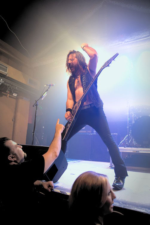 A estas alturas el nivel de comunión entre MIDNIGHT y sus seguidores era total. La banda había conseguido impactar, pero también convencer al respetable. Así que tocaba poner la puntilla a una descarga apabullante, y para ello que mejor que confiar en la irreverente contundencia de la delirante “You Can´t Stop Steel”. Pero sin duda el alarde de macarrismo total lo puso ese torbellino sonoro que lleva por título “Who Gives A Fuck”, con Athenar primero tomando la barra del local sin dejar de aporrear su bajo para acabar invitándonos a levantar nuestro dedo corazón mientras la audiencia se volvía literalmente loca.