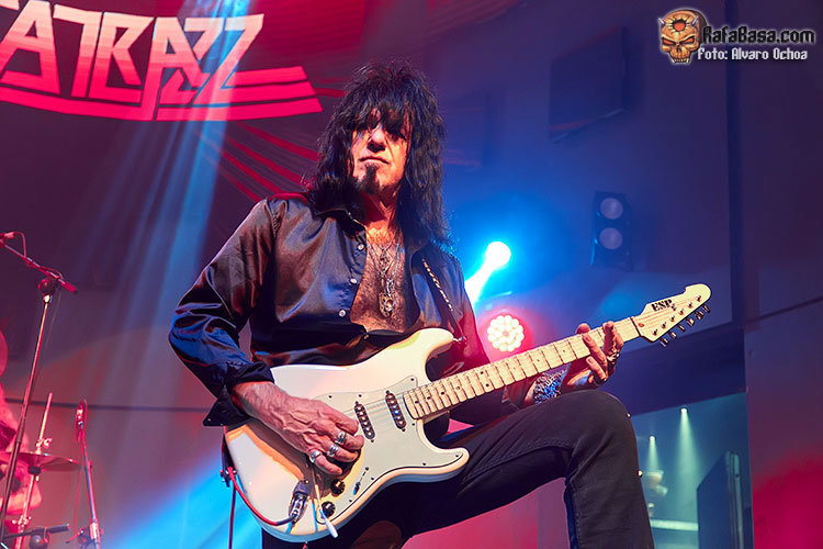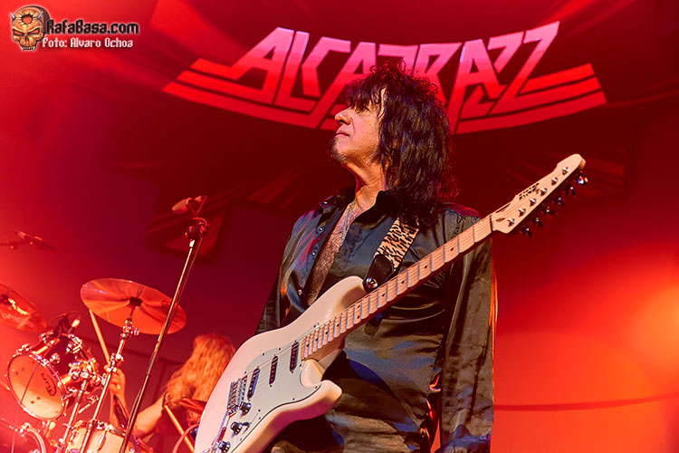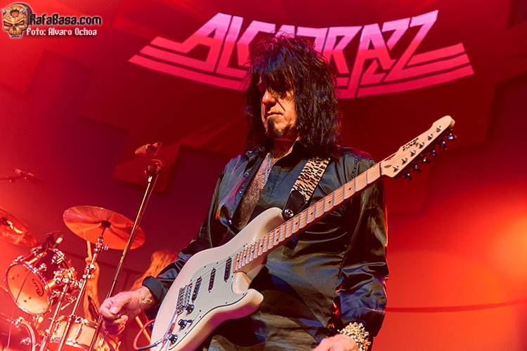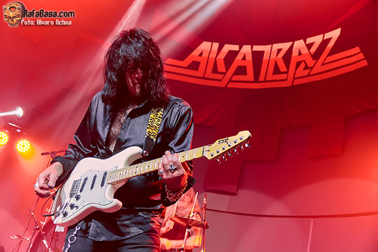 Los encargados de abrir la velada fueron ALCATRAZZ , y aunque tras su reunión la banda ha prescindido del vocalista Graham Bonnet, lo cierto es que contar con un sustituto de garantías como Doogie White ha acabado convirtiéndose en un seguro de vida para ellos. En cualquier caso, y pese a la presencia de los miembros clásicos: el teclista Jimmy Waldo y el bajista Gary Shea, la actual encarnación de ALCATRAZZ es cada vez más la formación del virtuoso guitarrista americano Joe Stump, aunque cabe remarcar que en el repertorio de esta noche pesó, y mucho, la trayectoria de su actual vocalista, ya que tuvimos ocasión de escuchar temas de RAINBOW y de Michael Schenker.