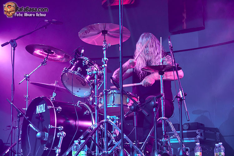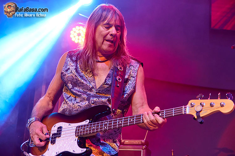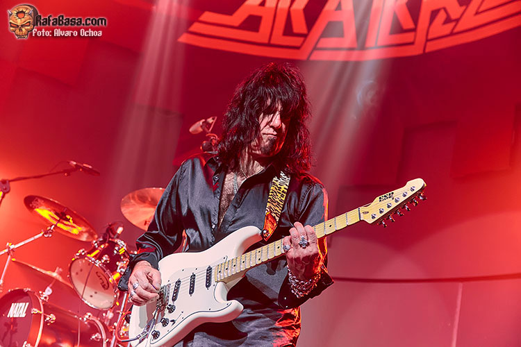 El retorno sobre el material de ALCATRAZZ llegaría de manos de otra de las imprescindibles de la primera etapa como fue la siempre adictiva “Jet To Jet”, que se saldó con un ejercicio solista de un Joe Stump, que si bien es verdad que se mostró sobrio en las formas, derrochó virtuosismo y buen gusto a lo largo de todo el show. De entre las elegidas para representar su trabajo del pasado año una de las que mejor acogida obtuvo fue “Sword Of Deliverance”, que fue precedida de la presentación de la sección rítmica de la formación, poniendo especial énfasis a la hora de introducirnos al bajista Gary Shea, quien respondió a la cálida ovación del respetable con una simpática mueca.