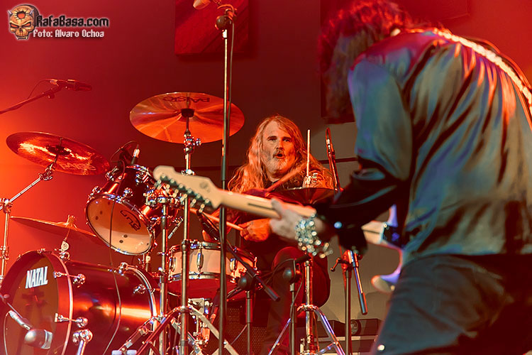 Afortunadamente Mr. White fue calentando la voz a medida que avanzaba el show, de hecho presentó a sus compañeros cantando. Fuera como fuera, donde si se mostró de lo más solvente fue en su faceta como frontman, ya que no dejó de animar y espolear al personal para que se convirtiera en parte de la fiesta, dándonos la entrada para que participáramos en los coros de la novedosa “Turn Of The Wheel”. Acto seguido serían los omnipresentes teclados de Jimmy Waldo los que se encargaron de flanquearnos el paso hacia otra de las sorpresas de la noche el “Take Me To The Church” de Michael Schenker Fest, que fue coreada con devoción y en la que Mr. White se mostró de lo más solvente dejando patente que se encontraba mucho más cómodo interpretando las composiciones que ha grabado en los últimos años.