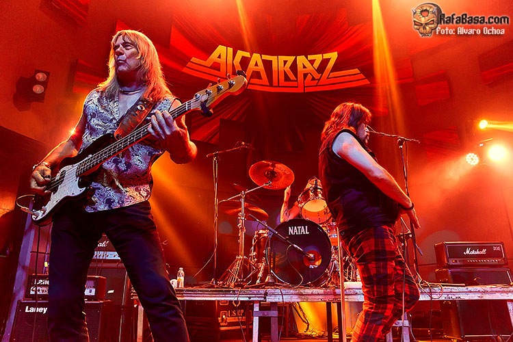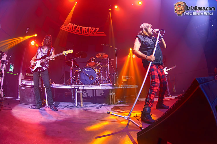 Debido a un imprevisto de última hora accedí al recinto cuando ALCATRAZZ estaban ya sobre las tablas, concretamente mientras atacaban lo que fue el segundo corte de la velada, el clásico contenido en su ópera prima “Too Young To Die, Too Drunk To Live”, y lo primero que me gustaría destacar fue la entrega del público que abarrotó el recinto, con la gente completamente volcada coreando el estribillo siguiendo las indicaciones de Doogie White. Precisamente me gustaría puntualizar que el vocalista escocés se mostró algo justo vocalmente durante los primeros compases del show, con lo que piezas que grabó a mediados de los noventa junto a Ritchie Blackmore como “Wolf To The Moon”, o la fantástica “Ariel”, sonaron algo descafeinadas.