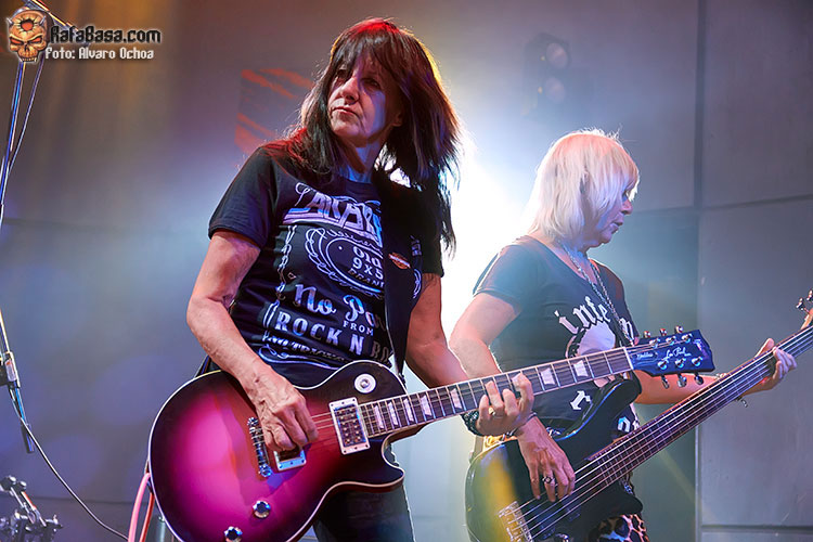 Así que la banda no bajó el nivel de intensidad y prosiguió su descarga con “Future Flash”. No abandonarían el material de “Hit And Run”, ya que la siguiente en sonar fue “Nothing To Lose”, toda una declaración de intenciones que sirvió para que Jackie Chambers tomará el timón de la banda y nos invitará a cantar mientras Kim desparramaba por el escenario. El último guiño que nos ofrecieron a lo que fue su última referencia de estudio llegaría de la mano del marchoso “Take It Like A Band”, que las chicas dedicaron a la memoria de los músicos que conformaron el line-up más legendario de MOTÖRHEAD.
