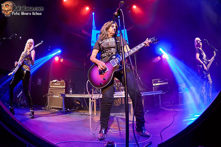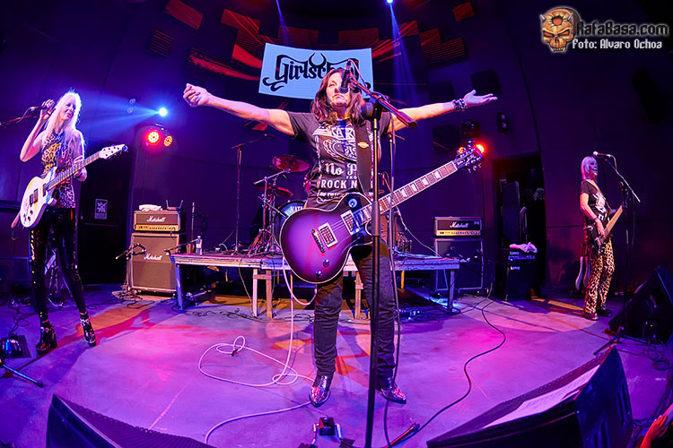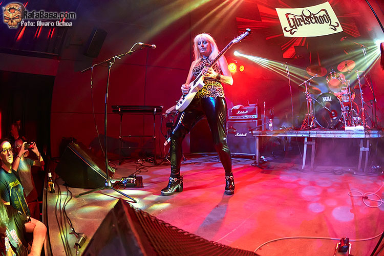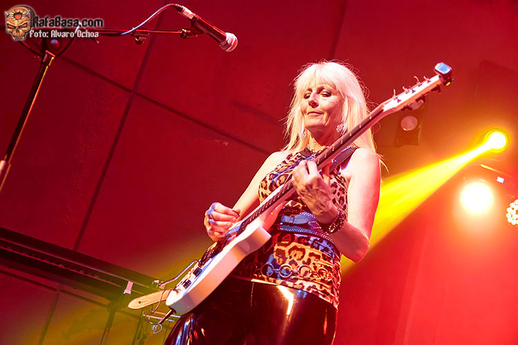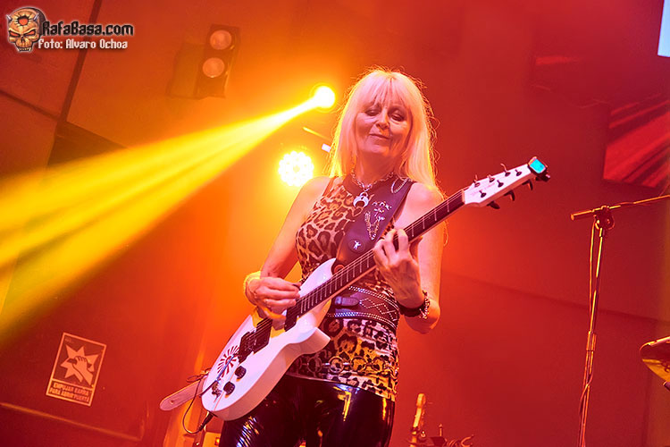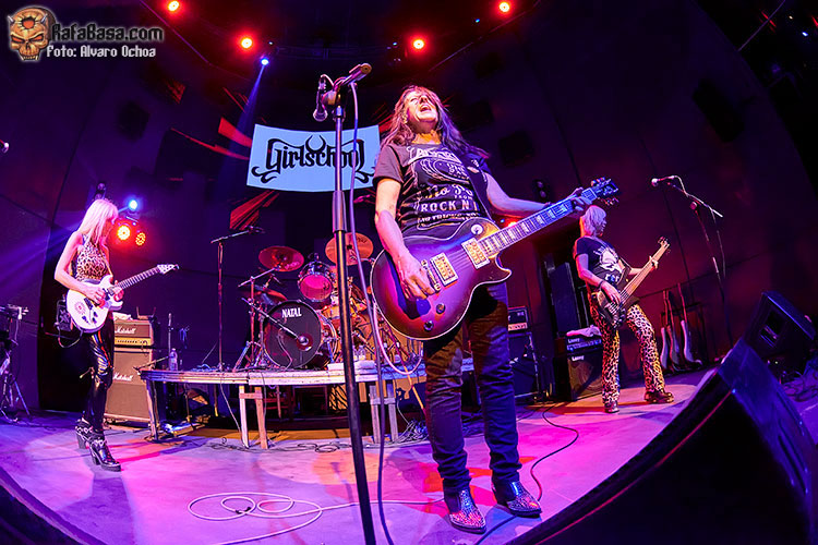Tras la habitual pausa y el consiguiente cambio de equipo todo estaba preparado para la descarga de GIRLSCHOOL . Antes de empezar a desgranar lo que fue la descarga del cuarteto londinense me gustaría puntualizar que parte del público decidió dar por concluida la velada tras la descarga de ALCATRAZZ, ya que durante el show del combo que capitanea Kim McAuliffe la sala presentó algunos huecos, algo incomprensible si tenemos en cuenta su bagaje. Cualquiera que haya acompañado la trayectoria de la banda estará de acuerdo en que su época de mayor éxito fueron los primeros años 80, con lo que el grueso del repertorio de esta noche estuvo centrado, como no podía ser de otra forma, en esa etapa. Aunque cabe remarcar que las chicas no perdieron la ocasión de tocar un par de composiciones de lo que fue su última referencia discográfica de estudio “Guilty As Sin”, que data de finales de 2015.