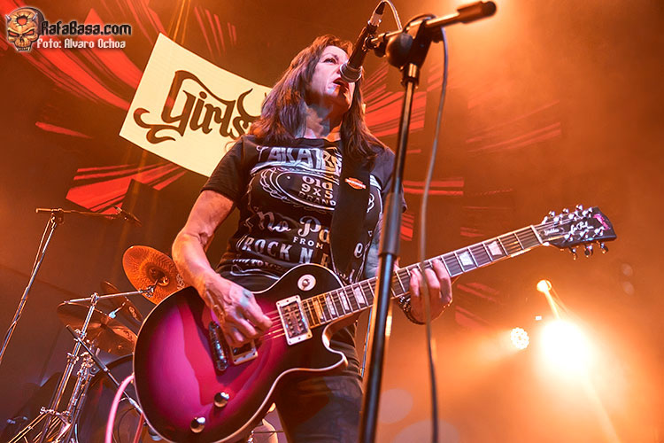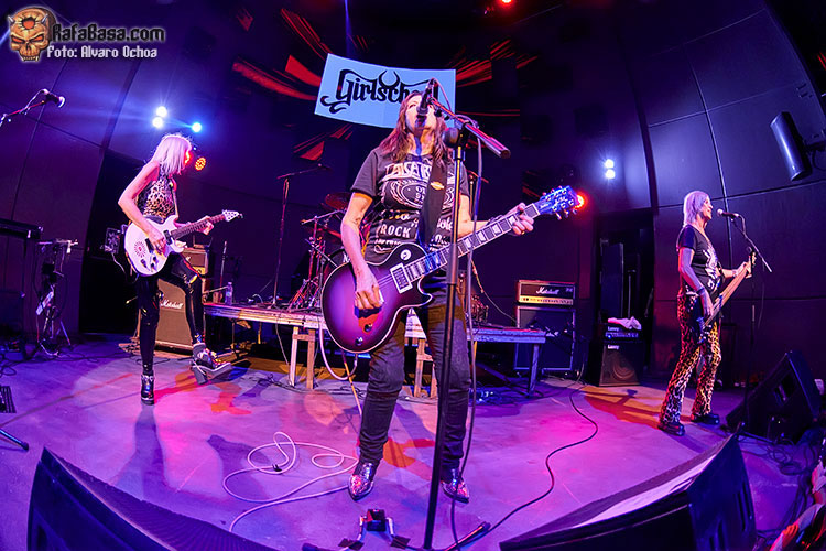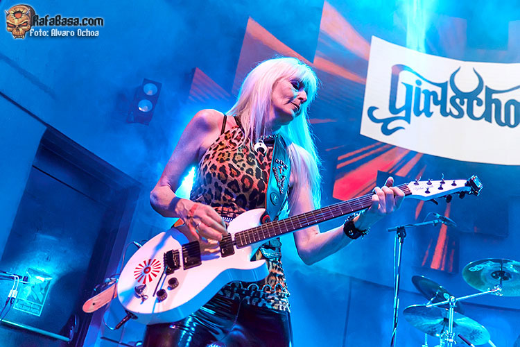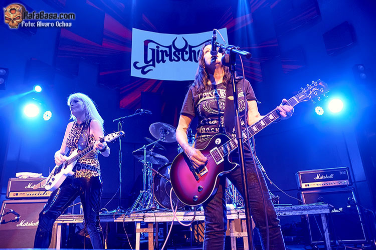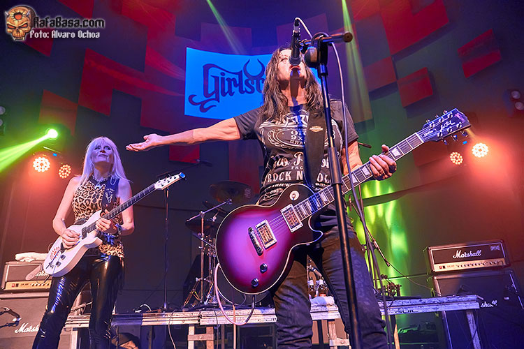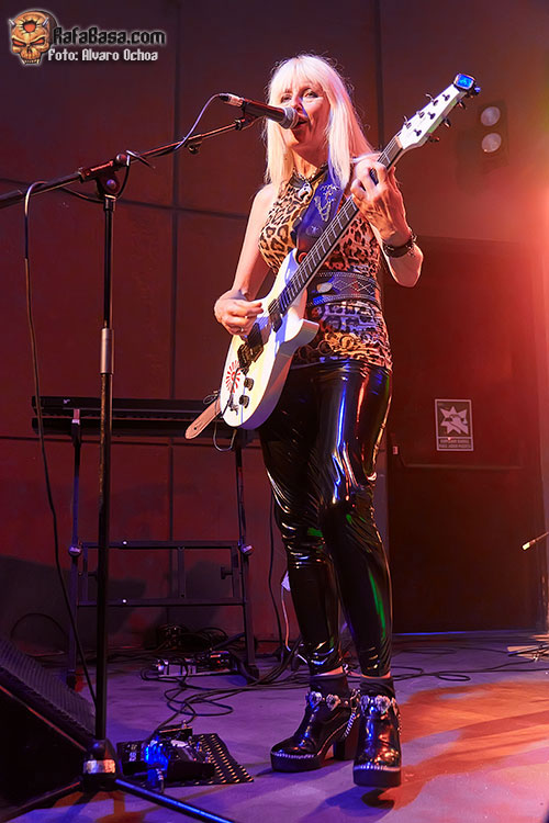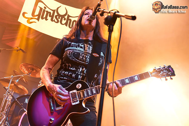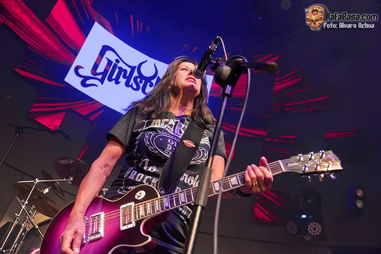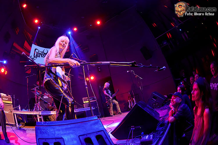 El cuarteto apareció en escena precedido por unas estridentes sirenas que nos alertaban que lo bueno estaba a punto de arrancar. Luciendo una amplia sonrisa y contando desde los compases iniciales con el apoyo de las primeras filas la banda rompía el hielo con un “tiro” seguro, desplegando toda la garra roquera del contagioso “Demolition Boys”. Dispuestas a no hacer prisioneros, GIRLSCHOOL imprimieron un ritmo trepidante al show, empalmando muchos de sus directos trallazos.