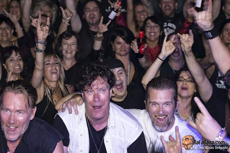 El show se abrió con un tema de esclarecedor título: “Better late than Never”. Y es que parece toda una declaración de intenciones de estos curtidos suecos, que están casi disfrutando de una segunda juventud en esta nueva etapa de la banda. Las expresiones de los músicos rezumaban admiración y sorpresa a partes iguales, y fueron numerosas las muestras de gratitud que tuvieron a bien ofrecernos a todos los asistentes. No en vano, todo el respetable se sumó pronto a la fiesta, coreando y bailando sin descanso. Hasta se nos hizo bastante corto el concierto, por lo divertido y ameno de su naturaleza. En momentos puntuales los músicos también brindaron, chupito en mano, con los más acérrimos seguidores de las primeras filas, y no tuvieron reparos en tomarse instantáneas y departir amablemente con todo aquel que quiso acercarse a saludar tras el fin de fiesta. En definitiva: Buen rollo a paladas, rock de alta categoría, y diversión asegurada.