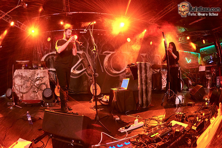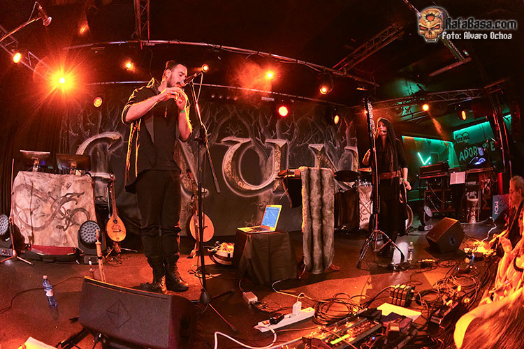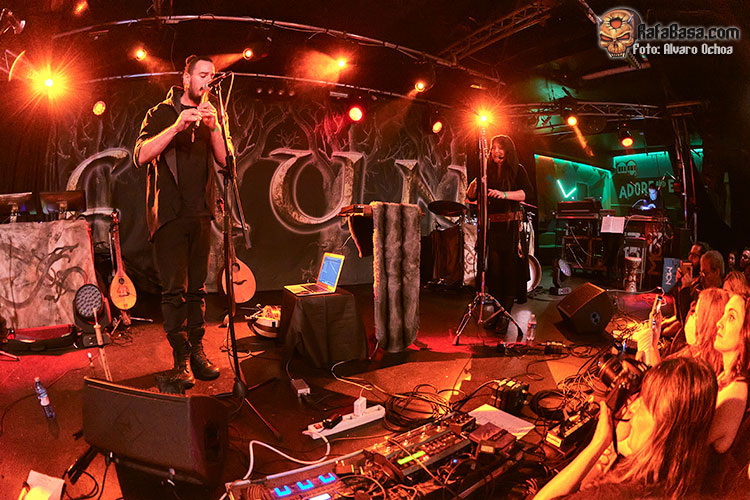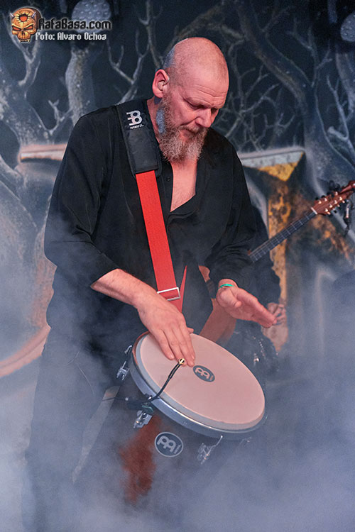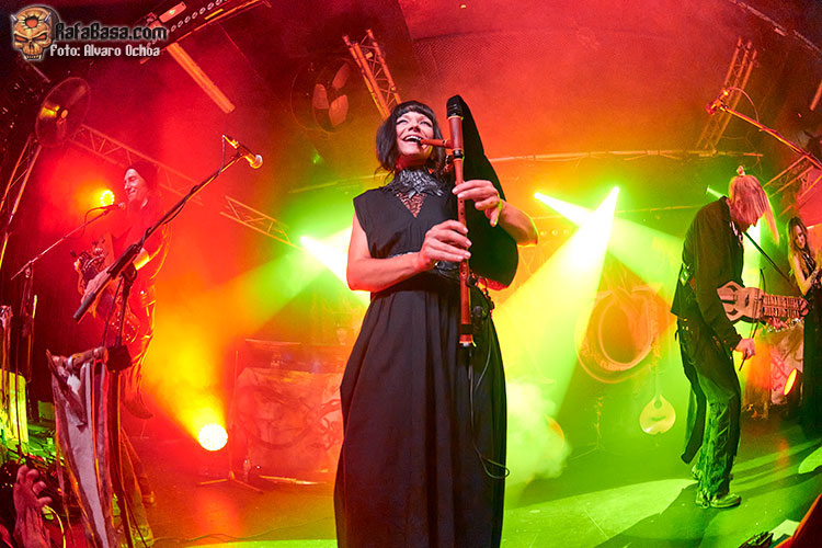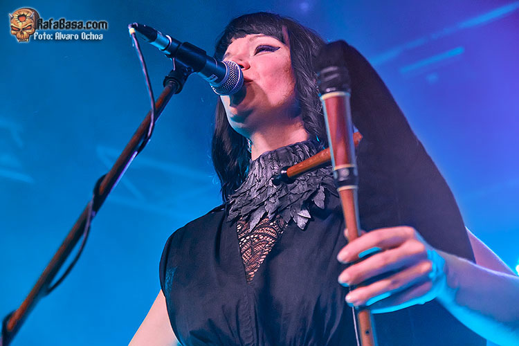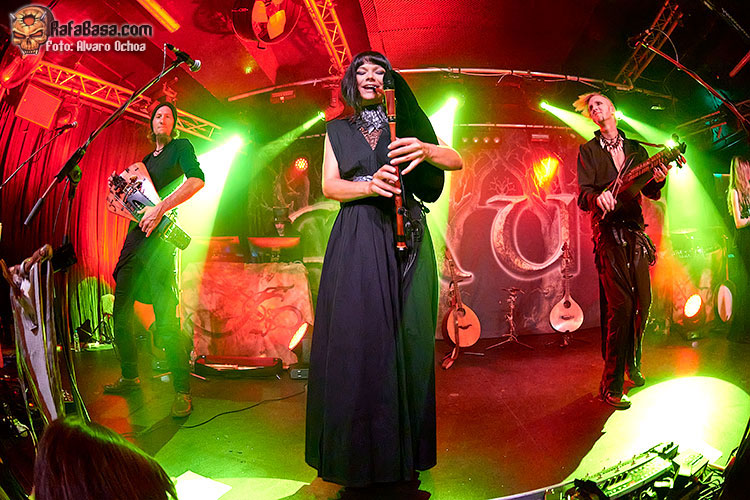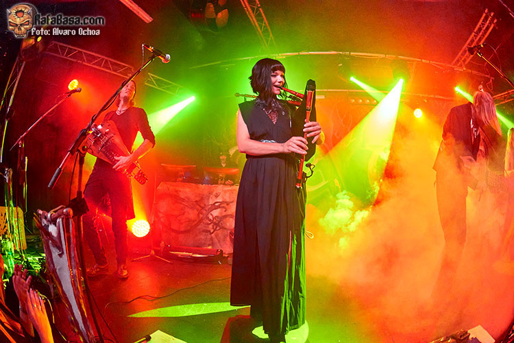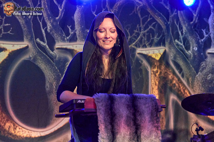 Las percusiones de Rudiger presagiaban lo que vendría a continuación, me refiero a la fantástica “Walpurgisnacht” del álbum de 2014 “Luna”, con la cual convirtieron la Mon en una auténtica fiesta pagana. La imponente y machacona “Baldur” sería la siguiente, para que luego el “padre de todos” hiciera acto de presencia con el tema “Odin”, esta vez con un inmenso Oliver a las voces. Con “Gwydion” pudimos comprobar una vez más el buen hacer a las voces del fantástico duo Laura y Adaya. Con “Tamlin” llegaba uno de los momentos íntimos de la noche con Oliver y Adaya en primer plano acompañados por la percusión de un incansable Rudiger.