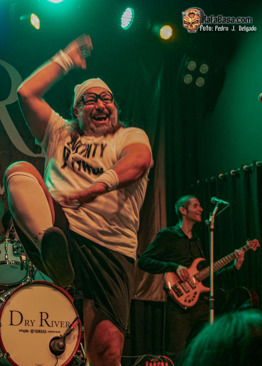 Así lo Hicieron y a su vuelta iniciaron la segunda parte con otro tema del último trabajo, “Funeral” tema en el que volvió a salir Fanfi que se puso a tomar medidas a los integrantes de DRY RIVER, apuntándolas en una libreta, para la realización de sus ataúdes y sacando lapidas al escenario. Una vez terminado este momento, aprovecho Ángel para jugar con el público cantando los coros de esta Canción y presentando a la Banda y haciendo que el público cantase la frase “eres el Mejor”, “No eres el peor” cada vez que Ángel presentaba a uno de los integrantes de la banda.