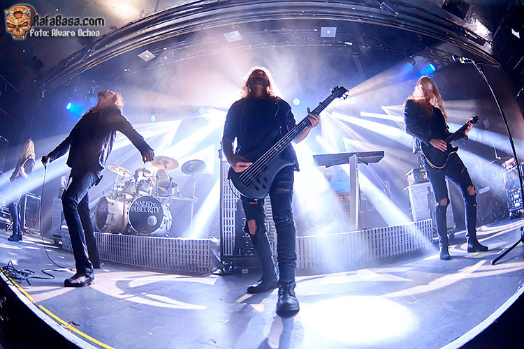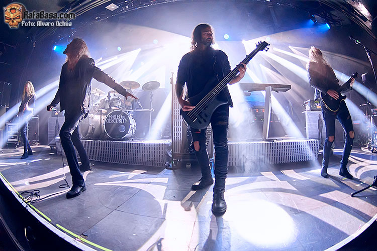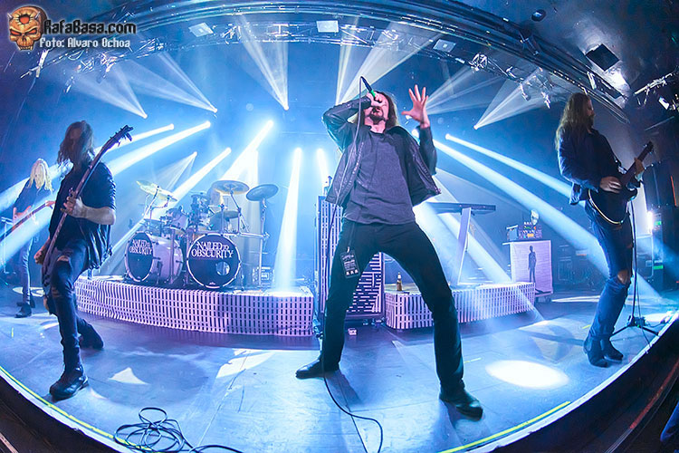 El siguiente tema “Protean”del album “King Delusion”sirvió para adentrarnos aún más en la propuestas de unos NAILED TO OBSCURITY, que supieron ganarse al publico de la riviera con su buen hacer sobre el escenario, “Liquid Mourning” con esa atmósfera oscura muy en la linea de unos “katatonia” serviría de preámbulo, para el penúltimo tema de la noche “Clouded Frame” el ultimo sencillo de la banda salido este mismo año, para luego cerrar con “Desolate Ruin” un tema de 7 minutos cuyo sonido se centra puramente en un Death Metal melódico de manual, en conclusión un muy buen arranque de unos desconocidos, al menos para mi, NAILED TO OBSCURITY, que con su buen hacer consiguieron interesar a los presentes con su propuesta, corta pero intensa.