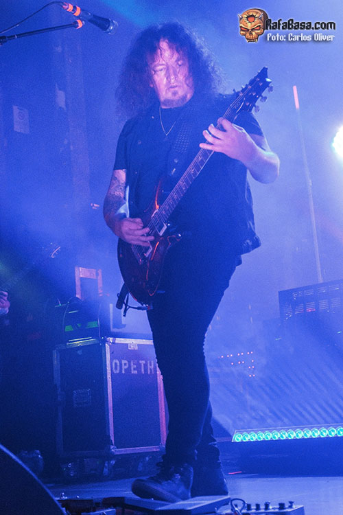 Tras firmar un arranque brillante tocaba empezar a repasar esas piezas que se han convertido en imprescindibles en sus descargas. Temas que en muchos casos les han granjeado los elogios de sus incondicionales, pero también las críticas de otros seguidores que se han ido bajando del barco conforme la banda iba creciendo y evolucionando. Y sin duda una de ellas fue “Demon Of The Fall”. Me gustó mucho la combinación de las proyecciones con el juego que de luces que le acompañó, aunque he de reconocer que estando todo tan medido la banda se vio en algunos momentos un tanto encorsetada. Tampoco me gustó que las charlas de Mr Åkerfeldt, -aunque necesarias para explicar la dinámica del show y regalarnos alguna anécdota-, fueran excesivamente largas, con lo que más de uno se desconectó. Así que en esos momentos podían escucharse las charlas de los que estaban más alejados del escenario, ajenos al show, mientras los más fieles demandaban silencio para escuchar los comentarios del carismático frontman.