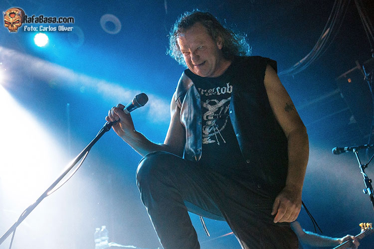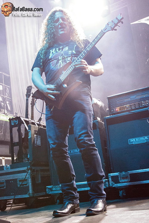 Sin embargo, sí que vi a la gente más animada cuando tras dirigirse Snake al personal la banda se adentró de lleno en la novedosa “Synchro Anarchy”, que contó también con los disparatados movimientos robóticos del vocalista. Los riffs se tornarían más secos, gruesos, -casi deudores de la escuela Sabbathica-, con el bajo también martilleando nuestros tímpanos para dar cobertura a las intrincadas y cambiantes estructuras de “Holographic Thinking”, que nos dejaba a una banda cada vez más metida en el show y a un público que se fue animando a medida que se iban sucediendo las canciones.