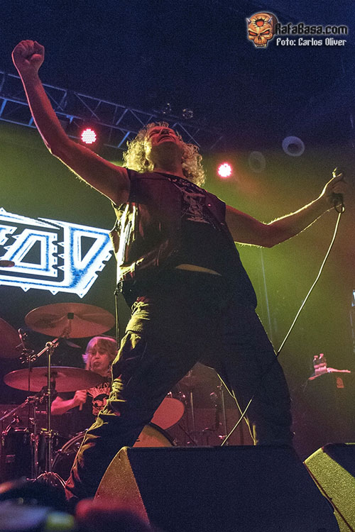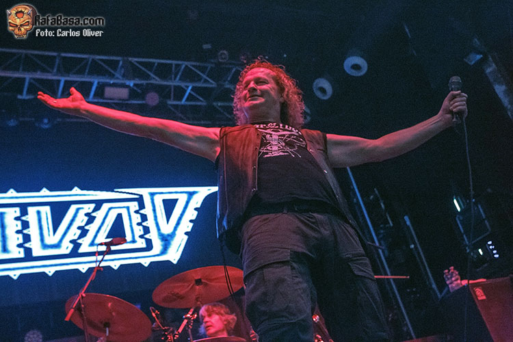 Dejando a un lado las preferencias y gustos personales lo que está claro es que VOIVOD son cuanto menos una banda peculiar. Su propuesta y su sonido son especiales, pero también lo es la personalidad y las formas de su frontman Snake. Un personaje alocado e imprevisible que no paró de moverse y animar al respetable. Aparecieron puntuales a su cita, respaldados por una proyección con logo clásico de la banda, y rápidamente empezaron a expandir su particular simiente sonora durante la inicial “Experiment”. He de admitir que me sorprendió negativamente las pocas luces de las que dispuso el combo canadiense y que tuvieran un sonido tan embarullado y poco nítido, especialmente durante los primeros compases de su presentación.