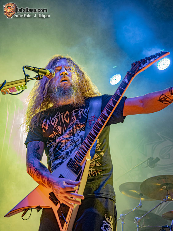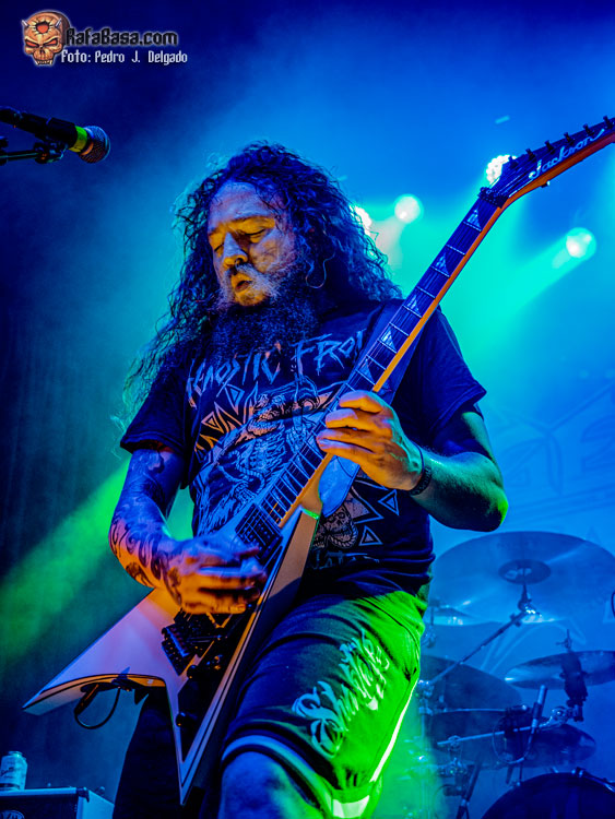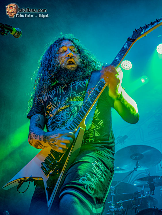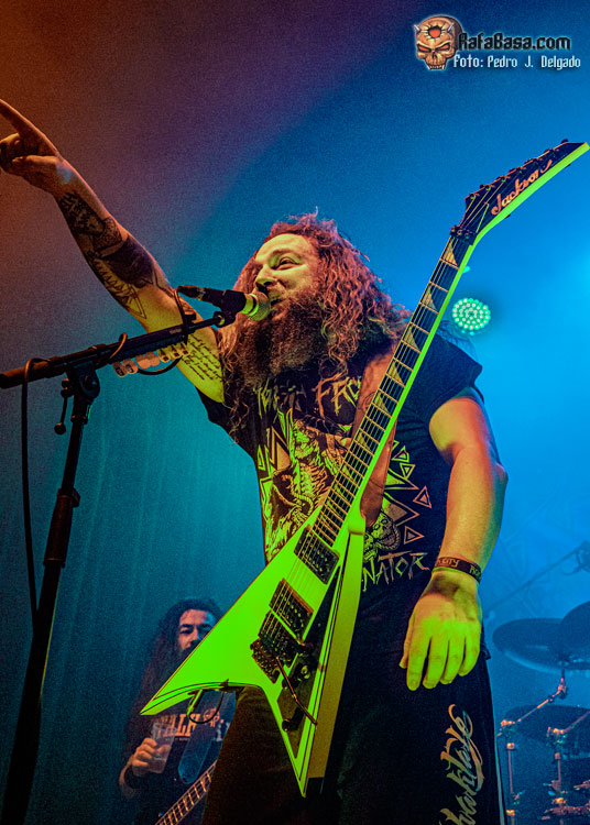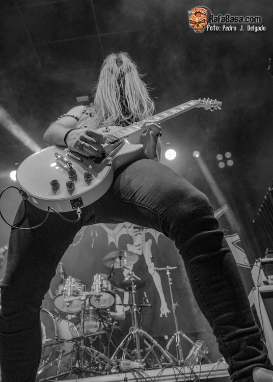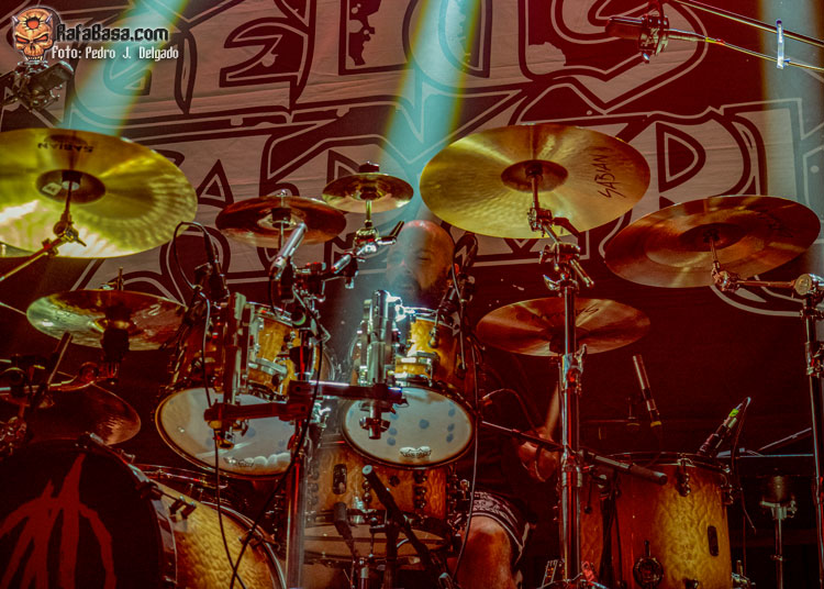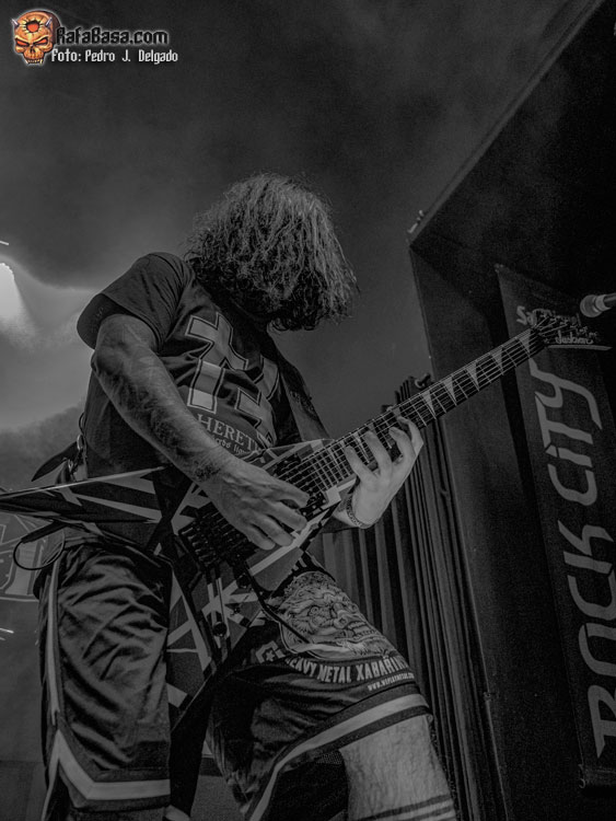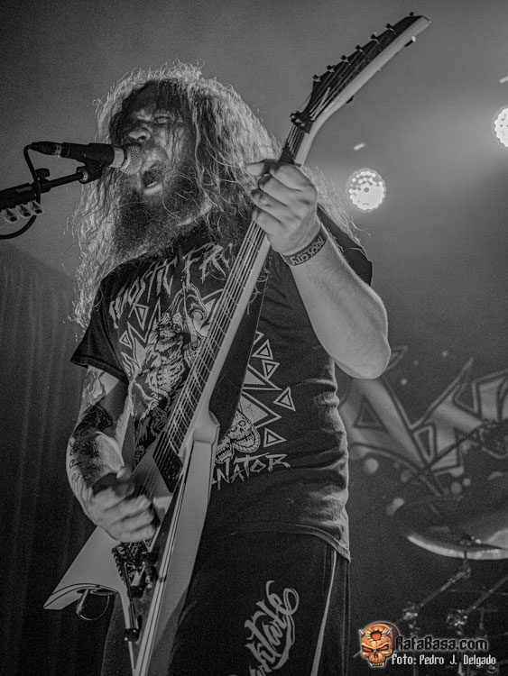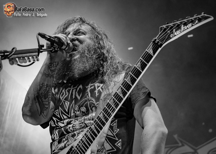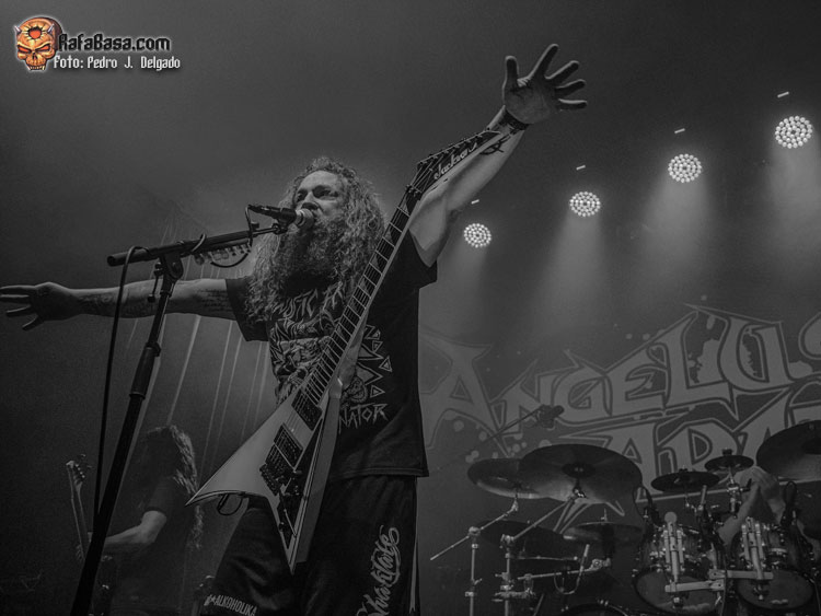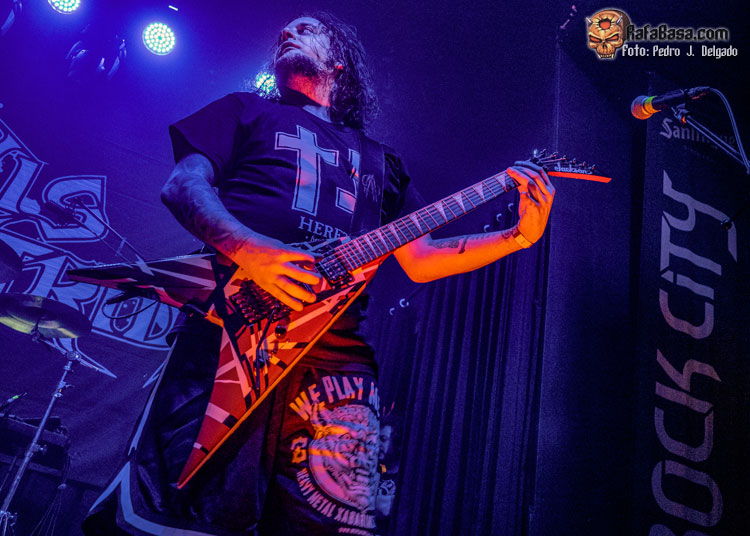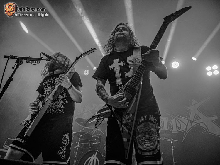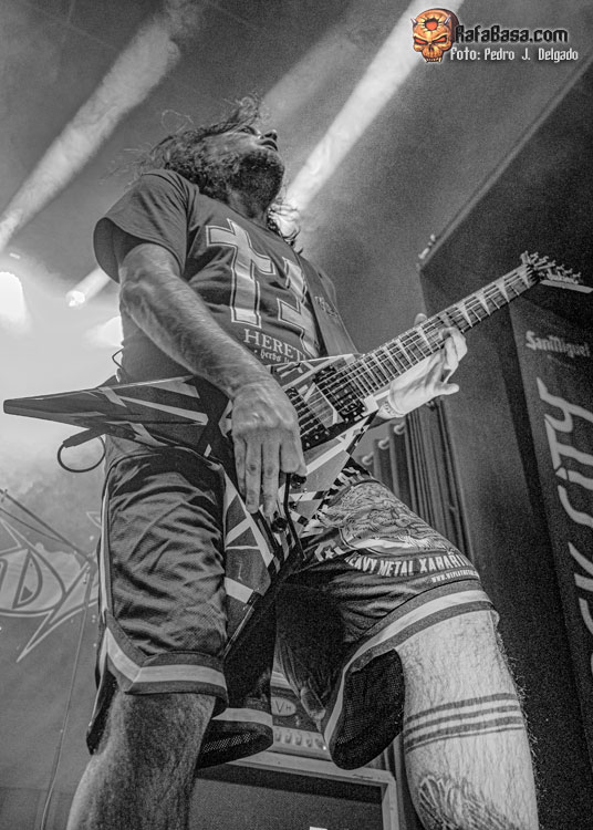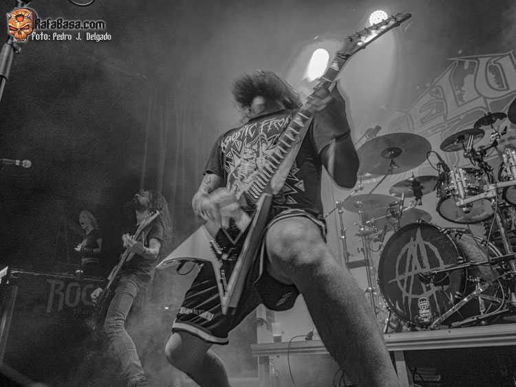 El punto álgido del concierto llegaba con sus canciones más rápidas y agresivas, comenzando con “Serpents On Parade” que fue acompañado por un breve guiño a sus adorados PANTERA y donde regresaron los moshpits y el caos se desató. Otro momento que es casi obligatorio en los conciertos de ANGELUS APATRIDA es con el tema “Give’Em War” donde se forma el ya clásico “wall of death” que dividió la sala en dos partes que volvieron a chocar en el punto álgido de la canción creando el caos y haciendo que la fiesta a estas alturas fuera un éxito.
