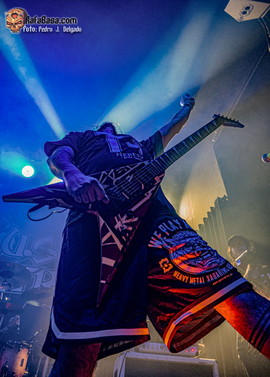 Llegaron unos segundos de calma con una intro que vaticinaba la llegada de “Sharpen The Guillotine”, pieza más melódica pero que es un himno de los de Albacete y cuya letra está más vigente que nunca. Era momento de menear las cabezas y alzar los puños para luego encontrarnos con otra sorpresa cuando presentaron “Thrash Attack” que volvió al setlist tras un tiempo guardada en el baúl y que posiblemente fue el primer hit de la banda.