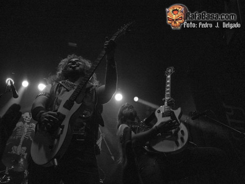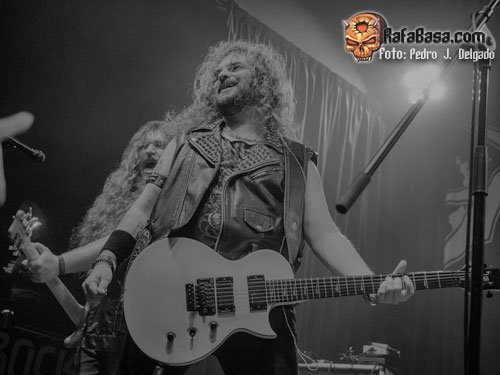 Tras los dos temas iniciales, saludaron al público con su particular “portuñol” (así llaman a mezclar ambos idiomas) y dedicaron el tema “I Will Rock Again” a todas esas personas que luchan por sus sueños, siendo el momento más emotivo y relajado de su show para volver a su último disco para tocar “The Revival” y “Rising Dust” Destacar que el guitarrista y vocalista Lex Thunder derrochó carisma además de cantar muy correcto alternando las voces con el bajista Antim “The Viking” pero la única pega de su concierto fue que el sonido, que pese correcto, sonó muy por debajo, faltándole algo de potencia.