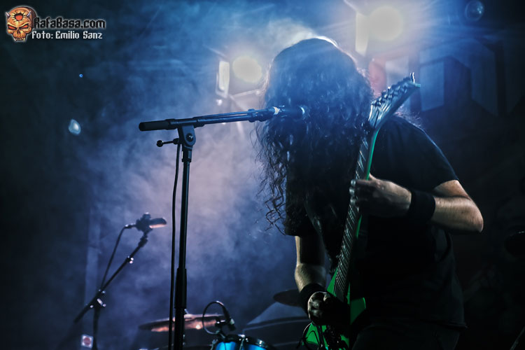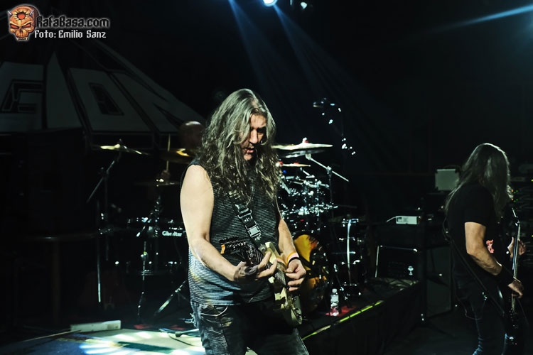 Pasados ya unos minutos de las 12 de la noche, se levantaba el telón de la Óxido justo coincidiendo con el final de la ceremonial intro para dejarnos ver las cuatro figuras protagonistas de la noche, que sin tiempo que perder arremetían ferozmente con un “Letha Liberty” que encendía los ánimos de las 150 personas allí congregadas. Hubo sonrisas, muchísimo ‘headbanging’ y un tímido ‘mosh’, pero lo que de verdad se podía notar en el ambiente eran las increíbles ganas que había de ver por fin de vuelta a Quimi Montañes y a Jonatan Dolcet, acompañados esta vez por dos músicos superlativos como son los hermanos Miguel Angel y Toni Rodriguez a la batería y segunda guitarra. Muchísimo cariño para recibirles, aunque la formación catalana no daba respiro, primero con “Dark Force” y después con “Beyond Betrayal”, que nos dejaban un comienzo para enmarcar, con unos LEGION muy centrados y sonando como un trueno.