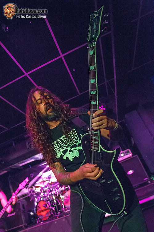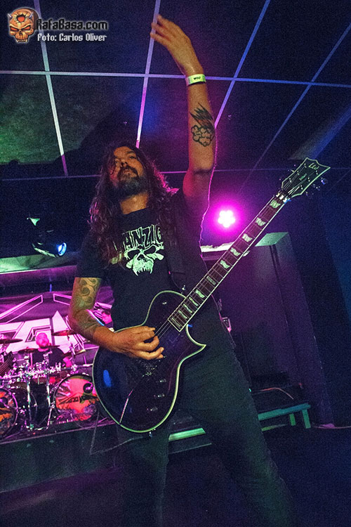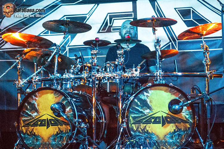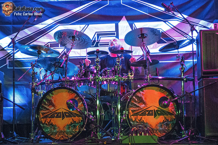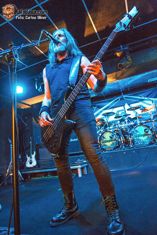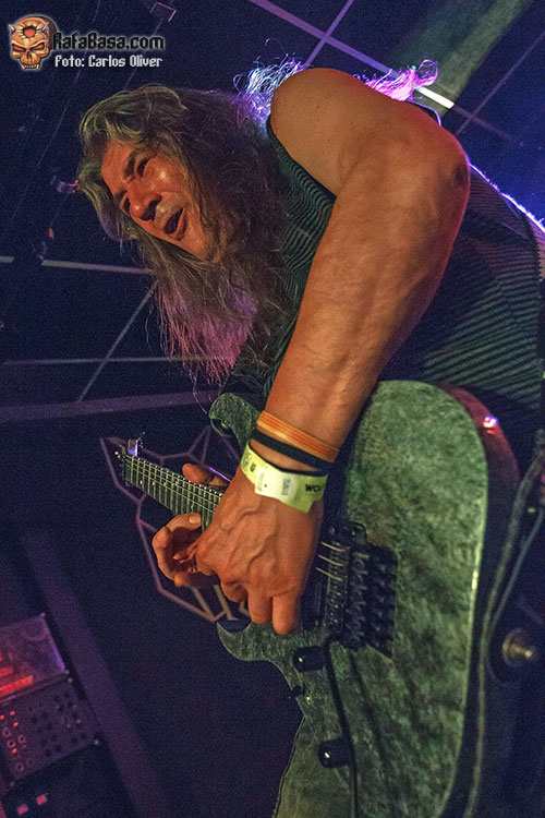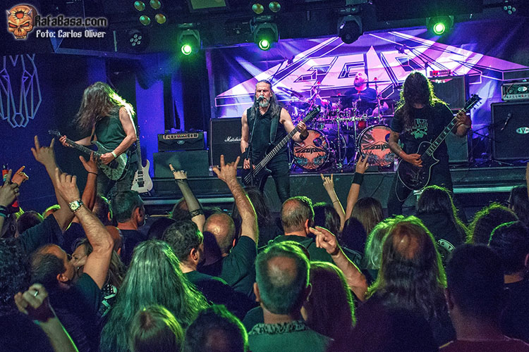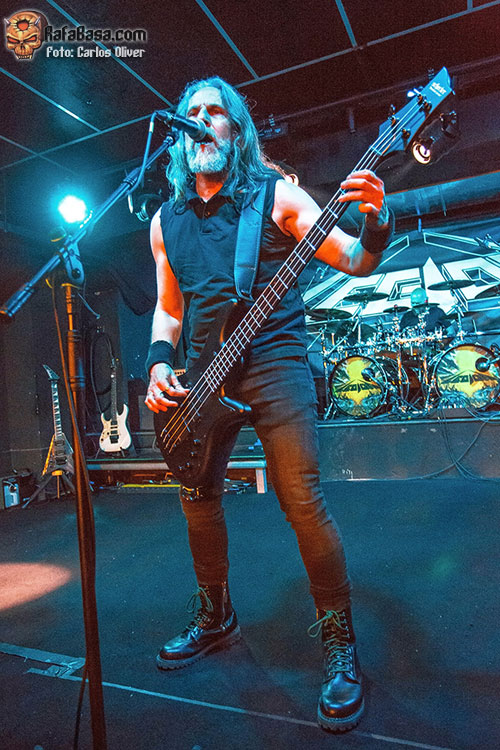 La banda salió a por todas, abriendo fuerte con una apuesta segura como es “Lethal Liberty” de su disco debut, una referencia absoluta en la historia del thrash metal nacional. Jónatan volvió a estar sensacional a las voces, siendo el frontman que se espera en este tipo de bandas, comunicativo y muy cercano con la audiencia. “Dark Force” nos hizo recordar el por qué se les llegó a considerar los METALLICA nacionales a las puertas de los años 90. Siguieron con “Beyond Betrayal”, tema que abría su disco “Labyrinth of Problems”, con composiciones ya más personales y el hito de haber sido grabado en los míticos Morrisound Studios de Tampa. En la renovada “Eternal Youth” se muestra el gran y determinante trabajo que han jugado Toni y Miguel Ángel Rodríguez en los nuevos LEGION . Cantando a capella, Jónatan introdujo una “Feel the Pain” que sonó veloz y potente.
