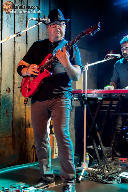 Por su parte, Matías Orero a la guitarra, se mantuvo mucho más estático y escueto en cuanto poses y guiños al público. Pero ni falta que le hace, oiga. De sus dedos (y sus espectaculares pedaleras, que abarrotaban todo el escenario en su posición) salen auténticas virguerías, y es capaz de fabricar sonidos realmente abrumadores. No todo es velocidad para él, pero eso sí, cuando hace falta, mete la quinta marcha y nos deja anonadados con su buen hacer.
