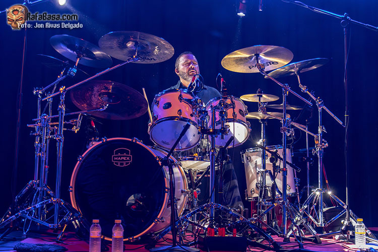 No quiero desmerecer al resto: Carlos Álvarez, otro grandísimo guitarrista, que echa también un capote a Ángel con los coros, al igual que su compañero David Mascaró, que además es el portador del bajo. El reducido tamaño del escenario de la Urban rock le relegó a un segundo plano durante gran parte de la noche, pero no obstante le vimos disfrutando como un niño durante todo el show. Por último, Martí Bellmunt fue el encargado de crear las atmósferas correctas en cada tema con sus teclados.