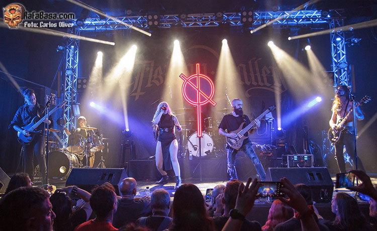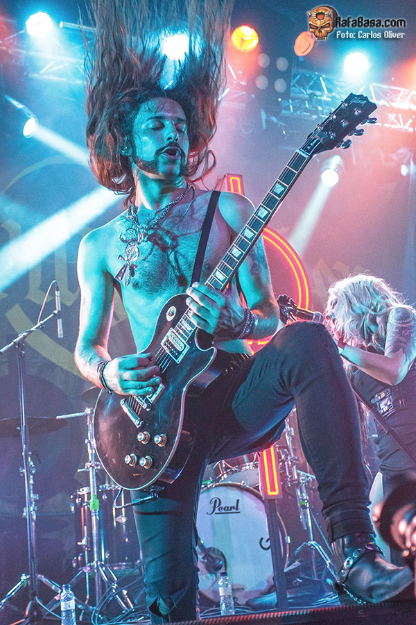 Me gustó mucho su puesta en escena, con los músicos moviéndose como descosidos por el escenario, especialmente su frontwoman Clau Violette, que apareció ataviada con un vestido negro, y que no paró de hacer headbanging, animar al personal y bailar, aunque me dio la impresión que durante los primeros compases del show no acabó de encontrarse del todo cómoda. Sea como fuera ASTRAY VALLEYsupieron aprovechar su oportunidad, y si ya nos dejaron unas buenas sensaciones en ocasiones anteriores, esta noche rubricaron que la banda no ha parado de crecer y que tienen un gran potencial, tal y como dejaron patente en cortes como “Firehearts” y “Northlights”, que sorprendieron a más de uno por su dualidad a la hora de combinar pasajes melódicos con andanadas humeantes de oscuro metal, dejándonos a la camaleónica vocalista alzando sus cuernos al aire mientras aparecían dos columnas de humo a los lados del escenario.