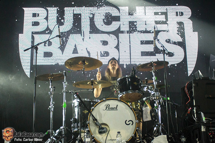 Tras la descarga de ASTRAY VALLEY no tuvimos que esperar mucho tiempo para degustar el plato principal del menú de esta noche: BUTCHER BABIES. Su puesta en escena fue bastante más austera que la del combo catalán, con únicamente el logo de la banda presidiendo el escenario. Donde si que pudimos apreciar una notable mejora fue en el sonido, ya que además de sonar todo bastante más potente, todo resultó más nítido, incluyendo esas partes pre-grabadas que se encargaron de dar empaque a sus andanadas más directas y abrasivas.
