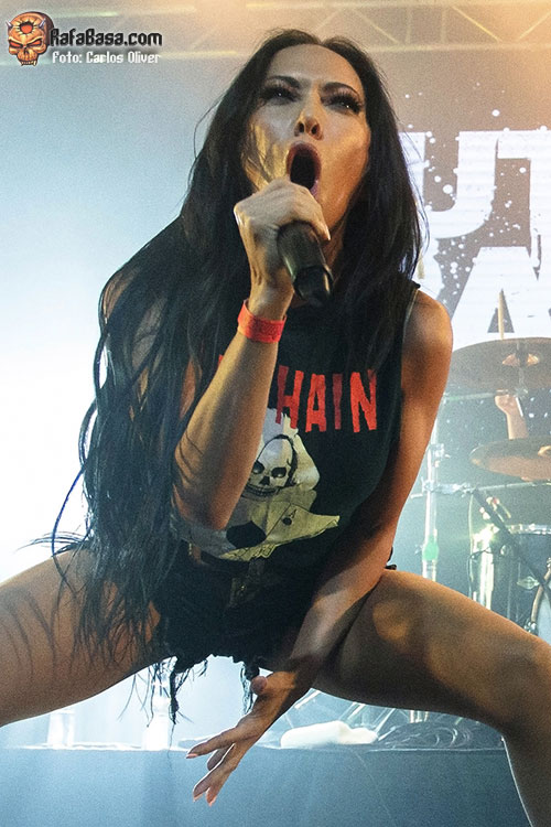 Pero que nadie se asuste, ya que este remanso de paz fue tan solo un espejismo pasajero, ya que las guitarras y los registros guturales volverían a llenar el recinto para azotarnos inmisericordemente con “Korova”, que fue la elegida para que ambas vocalistas buscaran la complicidad del público haciéndonos mover los brazos de lado a lado. Una vez má, las influencias noventeras, -y me atrevería a decir que la alargada figura de Mr. Rob Zombie-, volverían a dejarse notar con fuerza durante “Yorktown”, que fue la escogida para encarar la recta final del show.
