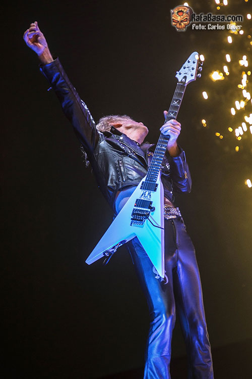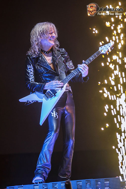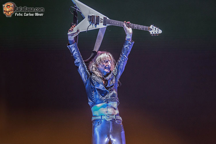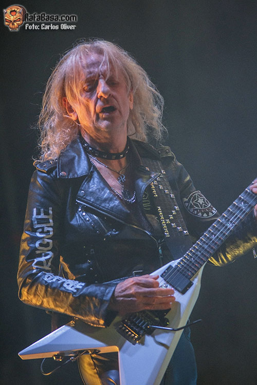 Si, evidentemente, el gran reclamo eran los clásicos de la ex- banda del guitarrista, pero lo cierto es que también sonaron algunos de los cortes incluidos en lo que hasta el momento ha sido su único lanzamiento a la espera de que en breve publiquen, -concretamente a finales del próximo mes de septiembre -, “The Sinner Rides Again”. Precedidos de la presentación de los músicos, el quinteto aparecía en escena para abrir fuego de forma rotunda y certera con “Hellfire Thunderbolt” dejando claro los estrechos vínculos que les conectan con su “banda madre”. Evidentemente no faltaron el cuero, las cadenas, las tachas y los agudos de un Ripper que se despachó a gusto durante el tema inicial mientras nos ofrecía una primera tanda de esos característicos movimientos pugilísticos que se han convertido en una de sus señas de identidad.