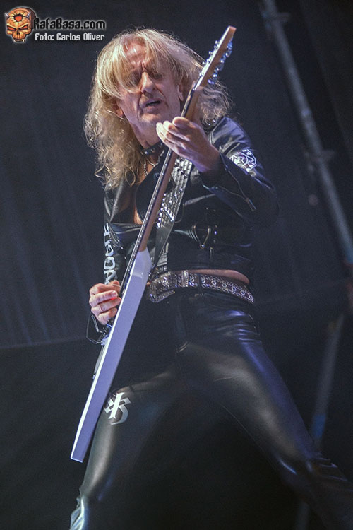 Me gustó mucho la selección de himnos de JUDAS que la banda eligió para la ocasión, ya que apostó por trallazos incontestables que cualquier fan de los británicos conoce y ha tarareado en infinidad de ocasiones. De modo que con un repertorio así era difícil que el personal se desconectara del show, con lo que “Hell Patrol”, hizo que todos volviéramos a levantar los cuernos al aire mientras las columnas de fuego se alzaban majestuosas antes nuestros ojos. Las guitarras se tornarían más marcadas para disparar el riff de la contundente “Brothers Of The Road”, que con ese toque más hard & heavy y su pegadizo estribillo fue la encargada de allanarnos el paso hacia una apoteósica recta final que arrancaba con el siempre trepidante “Metal Meltdown”.