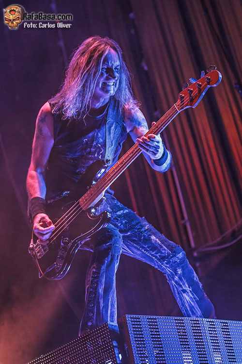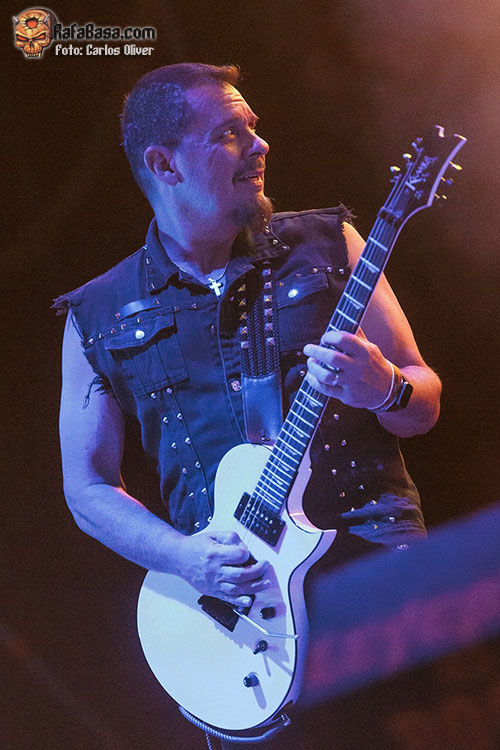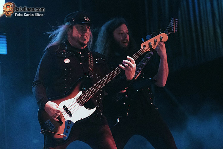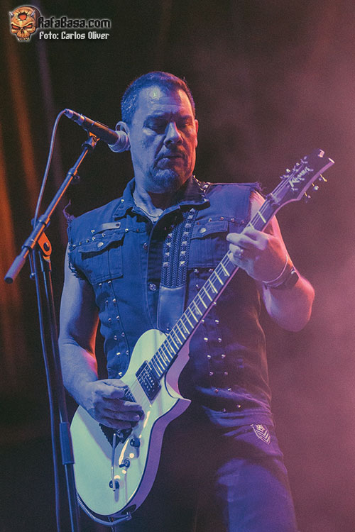 Pese a la estampa que presidía el escenario “De La Rosa”, con todos los miembros de la banda montados en moto, estaba claro que tampoco iban a faltar esta noche algún tema más compacto y de tempo más marcado y cadencioso. De modo que el bajo de Don Van Stavern sería el encargado de adentrarnos en el vacilón “Sign Of The Crimson Storm” que nos permitía recobrar el aliento antes de sumergirnos de lleno en esos fraseos solistas que son desde hace décadas una de las principales señas de identidad del combo americano. La velocidad no tardaría en regresar dándonos argumentos para agitar frenéticamente la cabeza siguiendo el desenfrenado ritmo de “Flight Of The Warrior”, que fue una nueva excusa para que todos cantáramos junto al fornido Todd Michael Hall.