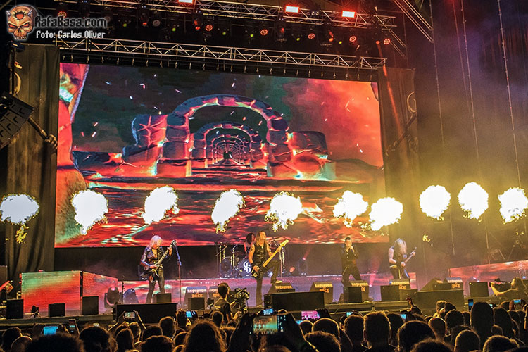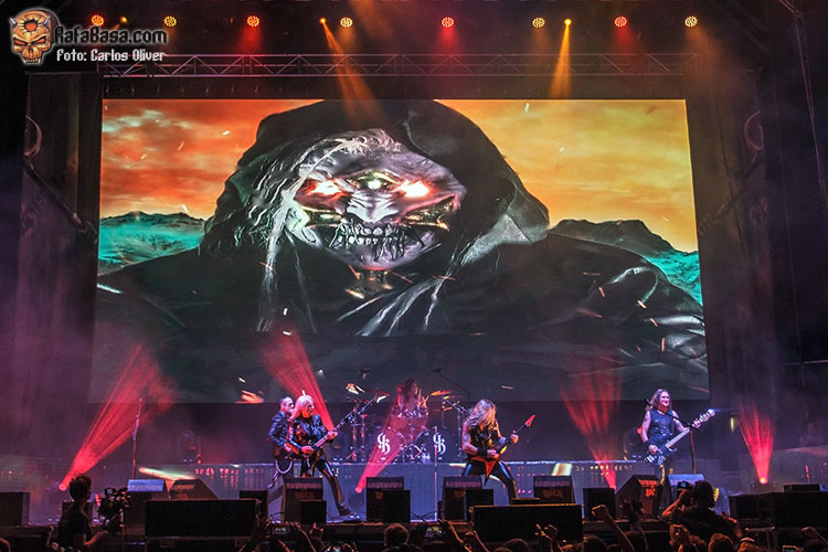 La excusa perfecta para que el personal saltara y cantara llegaría con “The Green Manalishi (With The Two Prong Crown)” mientras el escenario quedaba teñido de un intenso color verdoso. El objetivo de un festival es que el personal cante, se divierta, y en definitiva que se desmelene y himnos míticos e irrepetibles como “Breaking The Law”, son la mejor excusa para ello, y esta noche en Villena fue la mejor elección para que la gran familia metalera allí reunida, independientemente de edad y lugar de procedencia, cantara unida y en hermandad total.