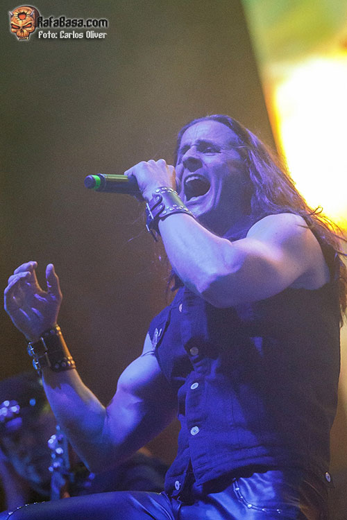 Arrancaron por todo lo alto, poniendo toda la carne en el asador. Y es que cuando uno da el pistoletazo de salida a un show con un himno atemporal como es el propio “Thundersteel”, uno se esta poniendo el listón muy alto, y más cuando la banda se mostró, desde el mismo arranque, en un estado de forma intratable, sonando como una auténtica apisonadora y con un Todd Michael Hall absolutamente descomunal, como siempre llegando a todas las notas e interactuando tanto con sus compañeros como con los integrantes de las primeras filas. Con la euforia desatada, el personal en shock, y mientras algunos corrían para tomar posiciones frente al escenario arrancaba otro himno altamente coreable como es “Fight Or Fall”.