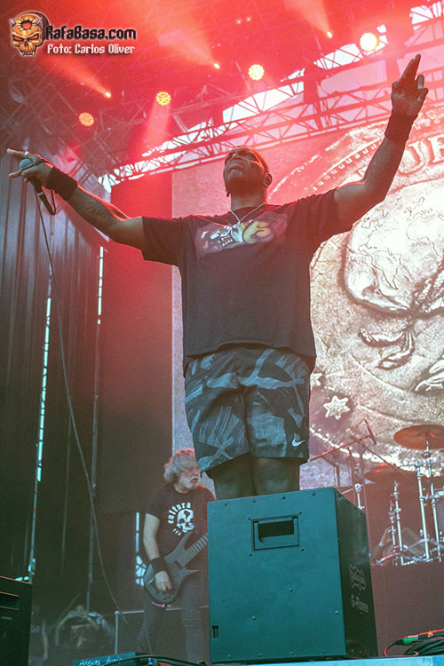 El tema “Policía” de los rockeros Titãs sonando anunciaba el comienzo de la actuación de sus compatriotas SEPULTURA, una de las bandas que se ha mostrado más activa en directo tras la pandemia y que este verano ha estado presente en múltiples festivales europeos. Como viene siendo habitual, la banda mostró una actitud y predisposición insuperable desde la inicial “Isolation”. Que Eloy Casagrande es una joya en bruto de los actuales SEPULTURA es algo que ya sabíamos y que quedó patente con la gran pegada que imprimió a “Territory”. Un inicio devastador que, eso sí, esta vez se vio disipado por un mal sonido. Con “Means to an End” y “Capital Enslavement” demostraron porque su último disco “Quadra” es para muchos lo mejor que han editado en años.