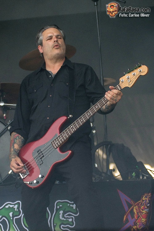 De momento, fueron desgranando más temas que cuajaron de fábula, poniendo en movimiento cada vez a más gente, elevando también el nivel de buen rollo que se respiraba con “I’m Alright”, en la que ellos mismos se pusieron a saltar en fila, mientras Dave y el batería Zac ponían unos coros que resaltaron muy bien. Klaus nos conquistaba presentando la siguiente “Failure” en un español más que aceptable (y no solo las tópicas palabras tan manidas). De cara al final, el escenario se iba llenando de humo, y caía ahora “Goddam Devil”. A lo largo de todo el corte, me gustaron mucho sobre todo las partes instrumentales, ese solo bien cargadito de wah, y los tonos altos de su vocalista en el último tramo, que nunca dejó de animar con palmas y gestos.